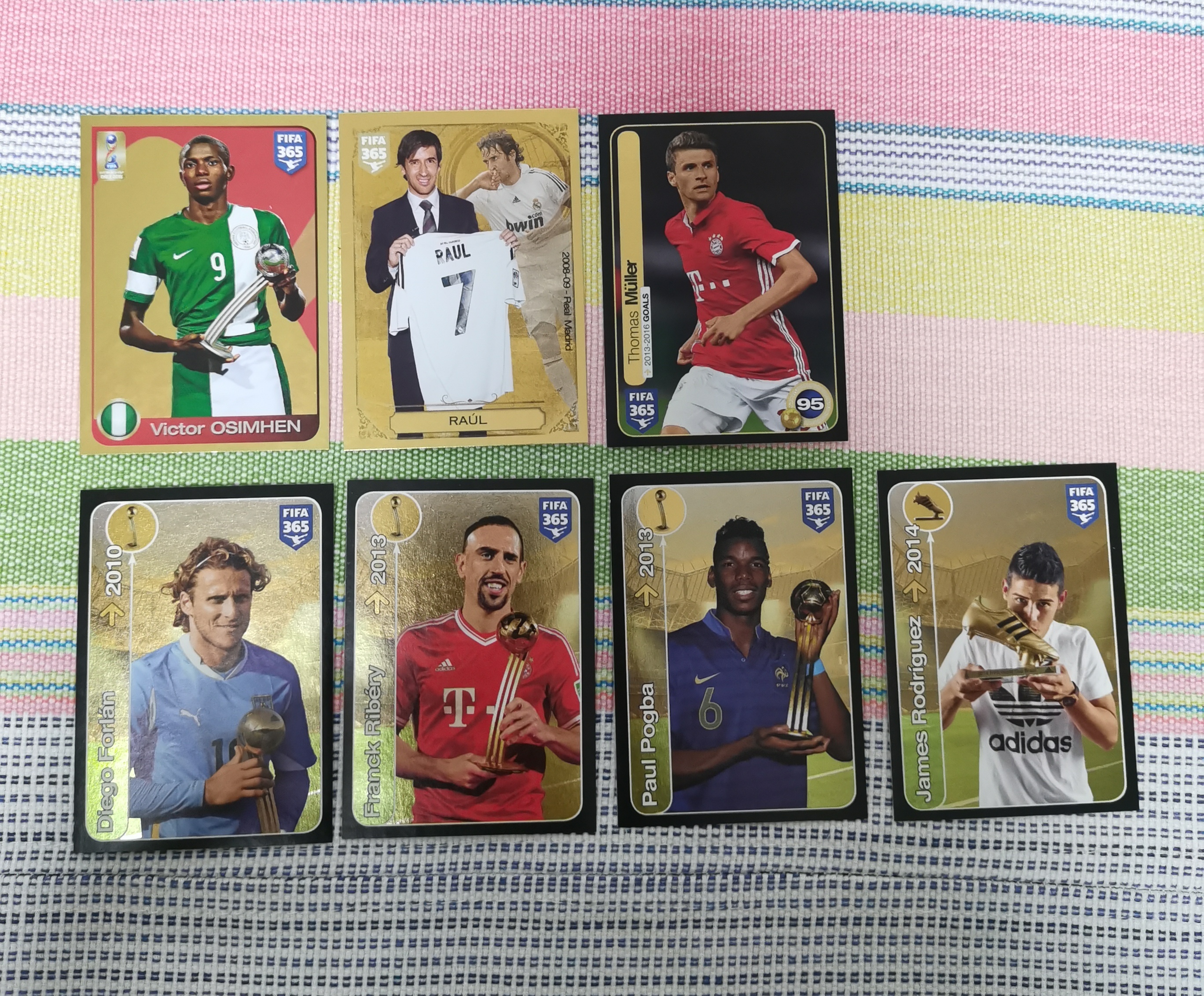 Panini FIFA365 贴纸 折射 劳尔 奥斯梅恩 奥西门 托马斯 穆勒 迭戈 弗兰 里贝里 博格巴 哈梅斯 罗德里格斯 J罗 金靴 世界杯最佳球员