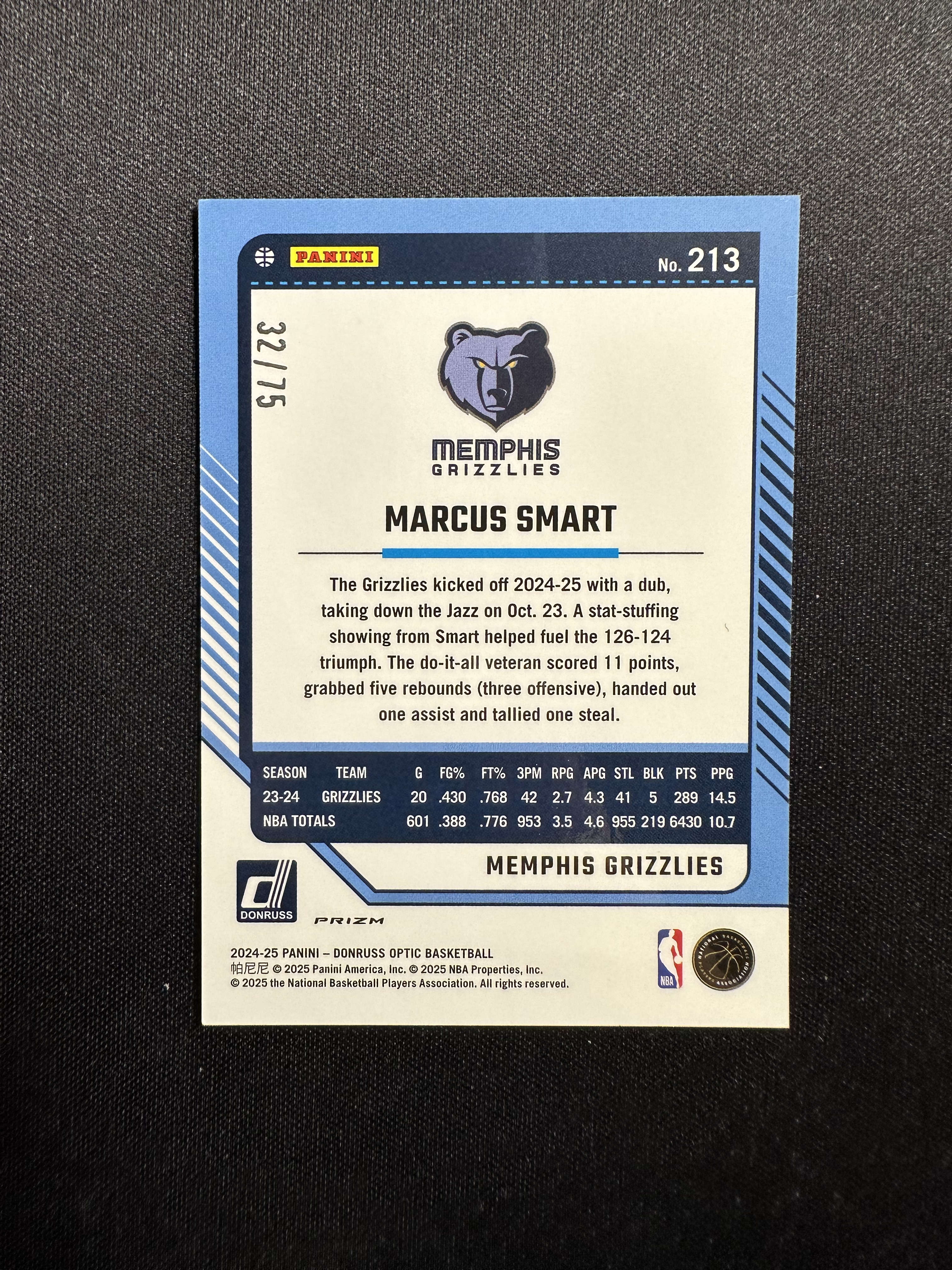 2024-25 Panini Optic Marcus Smart 杜蕾斯op 灰熊 马库斯 斯玛特 圈圈折 电力折 32/75编 卡品如图 【四小只】