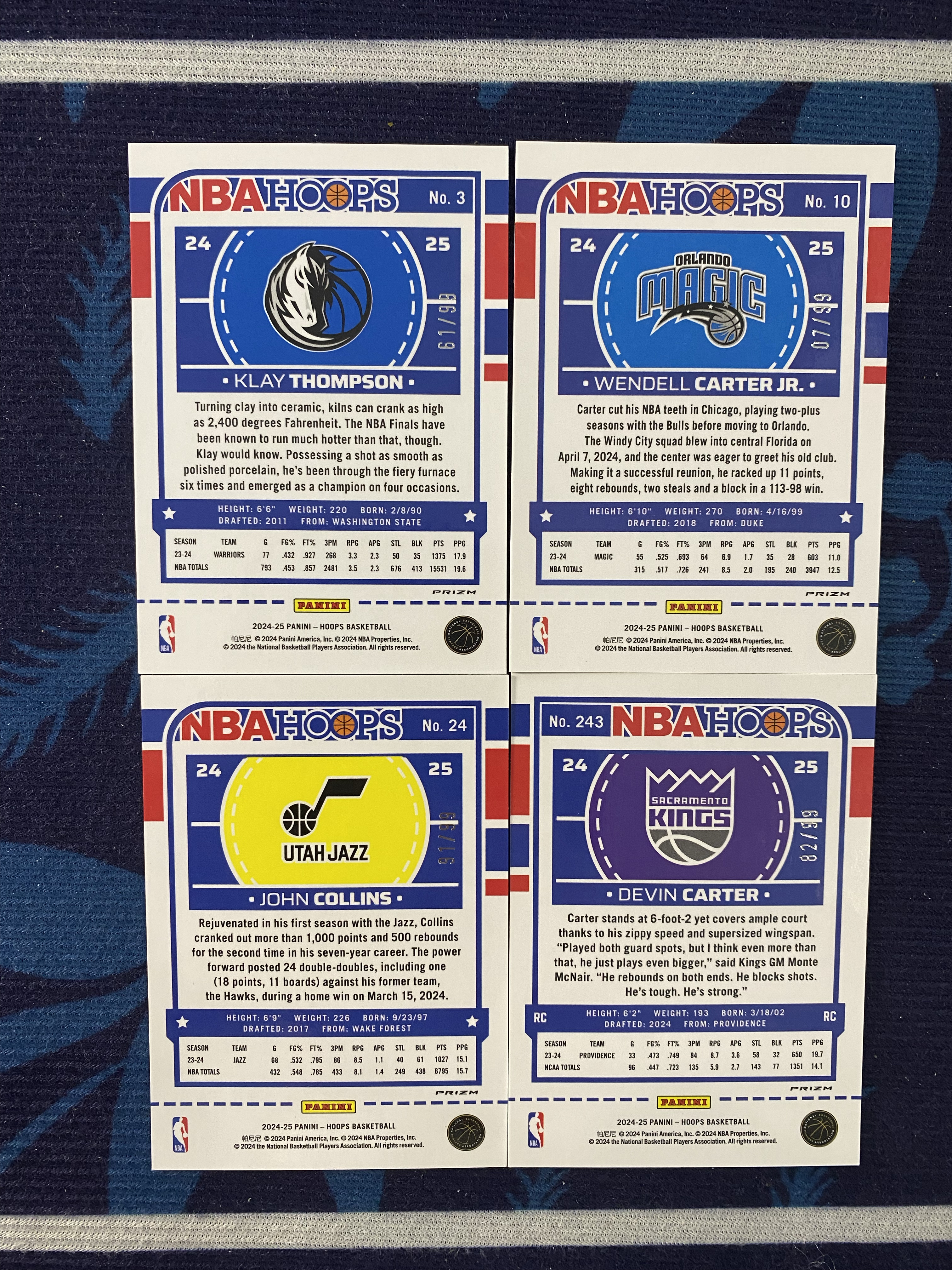 【不累计】2024-25 Panini Hoops 4张 /99编 红折射 base 打包 克莱汤普森 佛祖 温德尔卡特 约翰科林斯 德文卡特