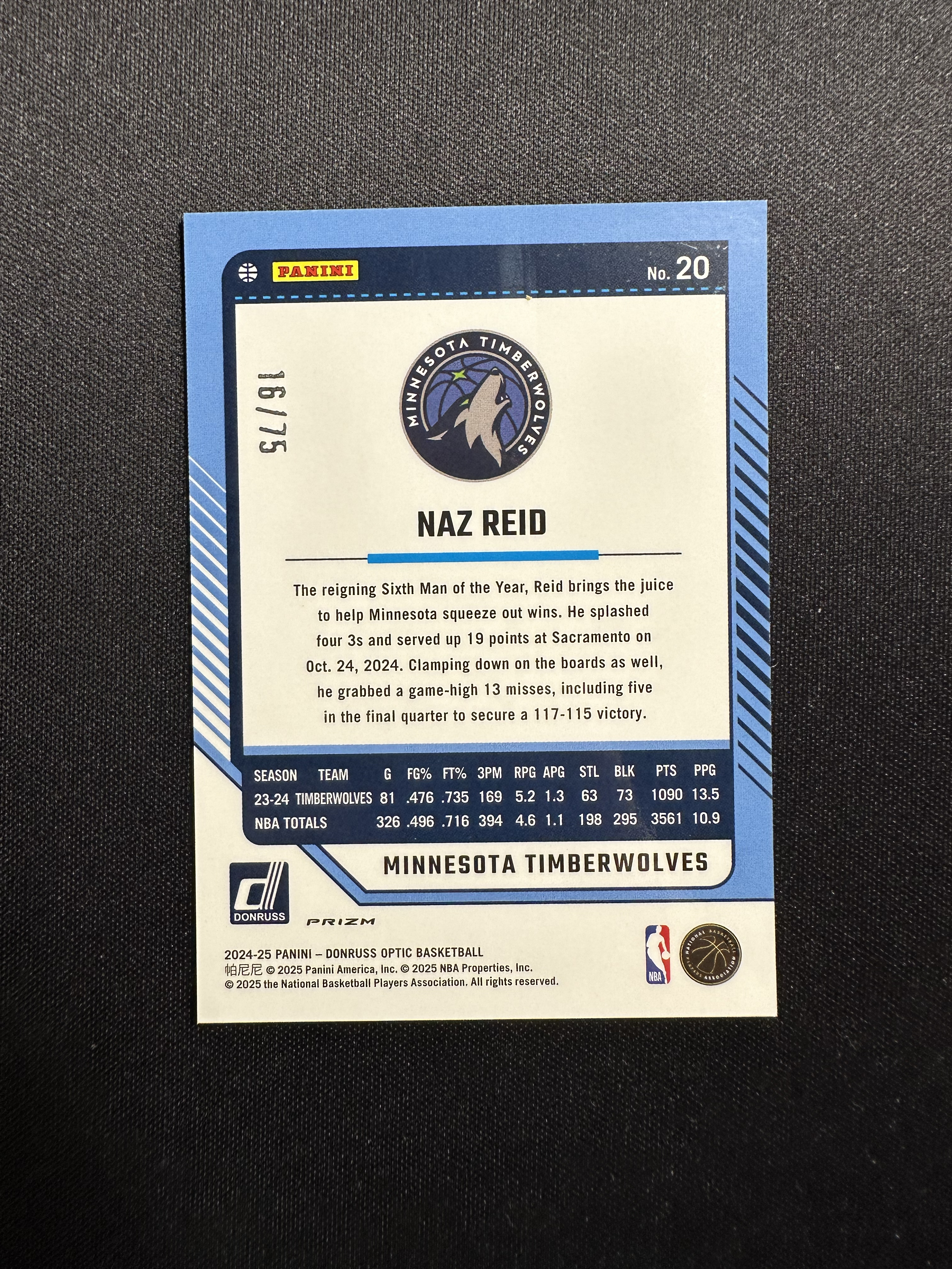 2024-25 Panini Donruss Naz Reid 杜蕾斯op 纳兹 里德 森林狼 黑金圈圈折 75编 op 卡品如图 【四小只】