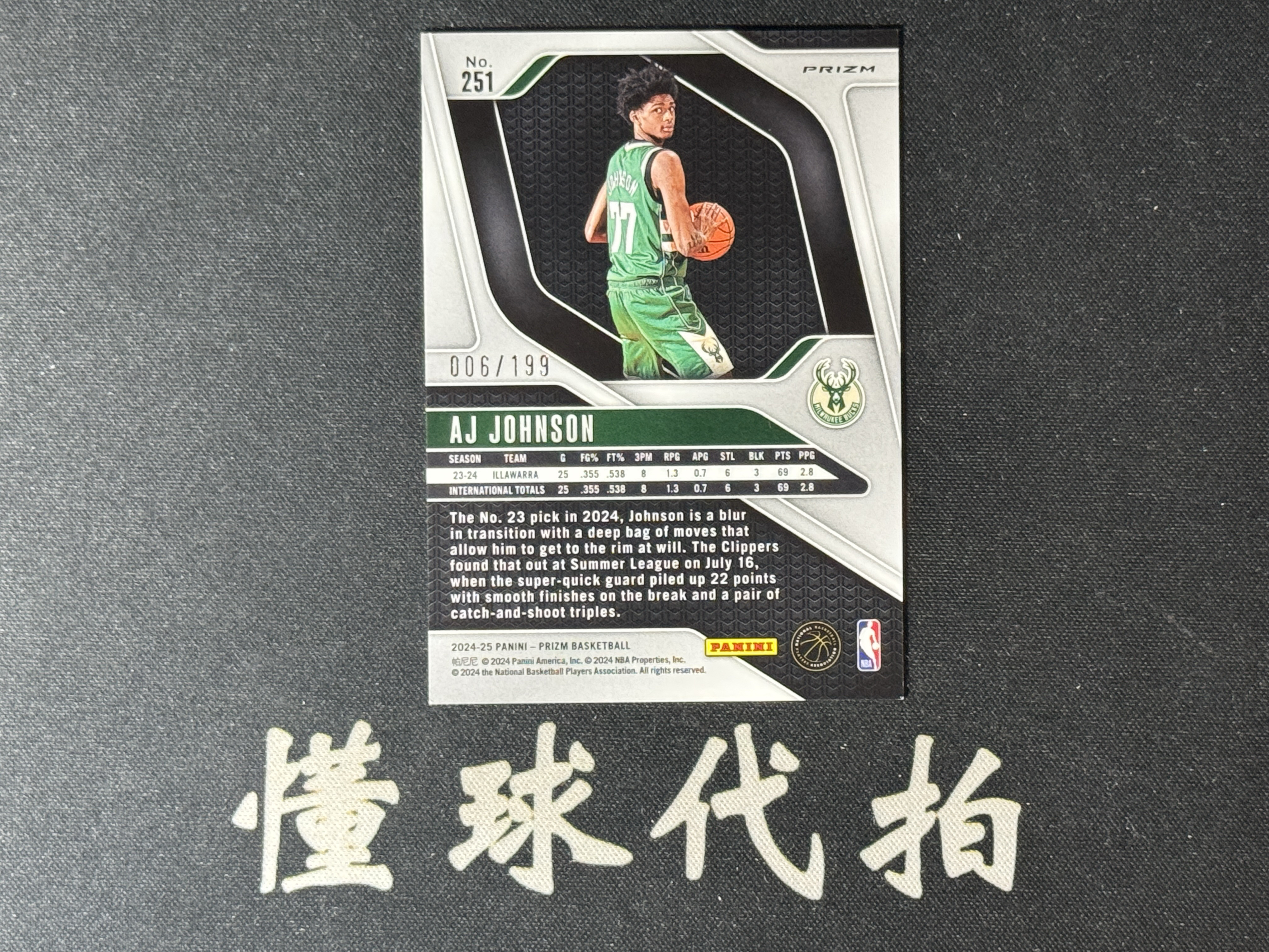 【懂球代拍】2024-25 panini prizm 限量 199编 RC新秀 AJ JOHNSON约翰逊 雄鹿 蓝折折射 值得收藏 DQ076D 005