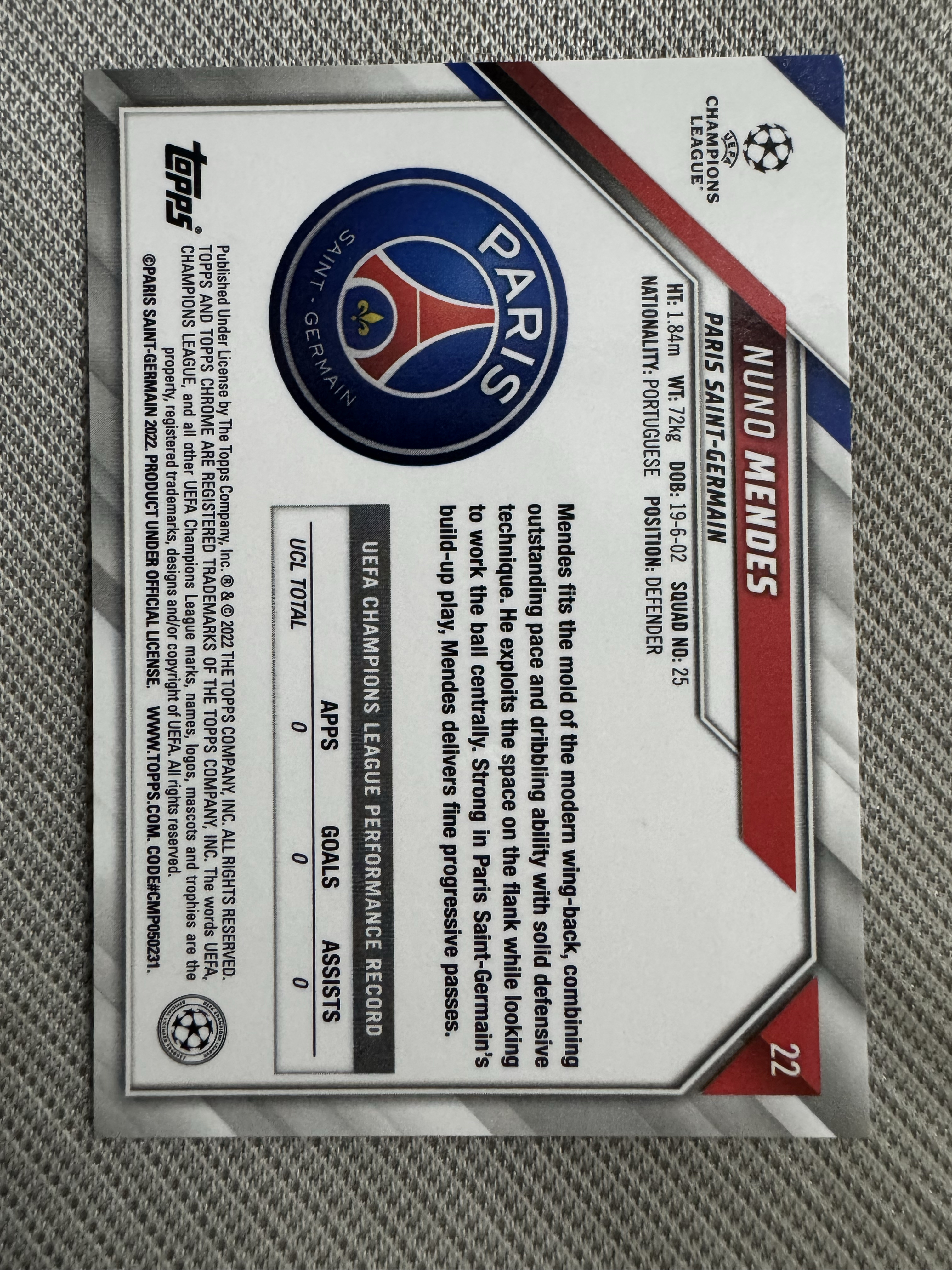2021-22 Topps UEFA Champions League Nuno Mendes RC 努诺 门德斯 rc 新秀年 金折 熔岩 大比例 超稀有 巴黎圣日耳曼 C罗 队友 葡萄牙 欧冠