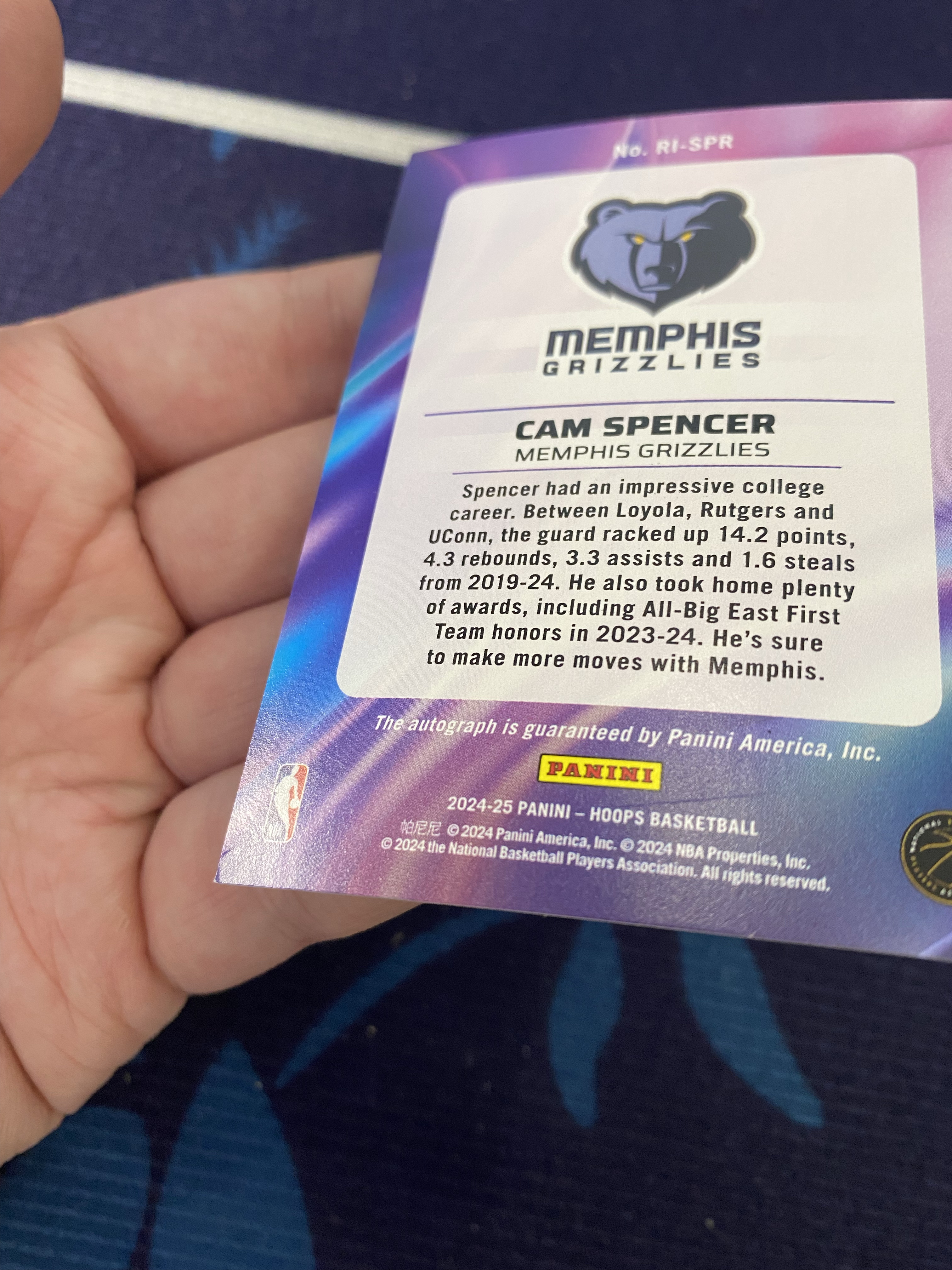 【不累计】2024-25 Panini Hoops 灰熊 卡姆 斯潘塞 RC新秀 Rookie Ink 折射 签字 Cam Spencer 瑕疵如图