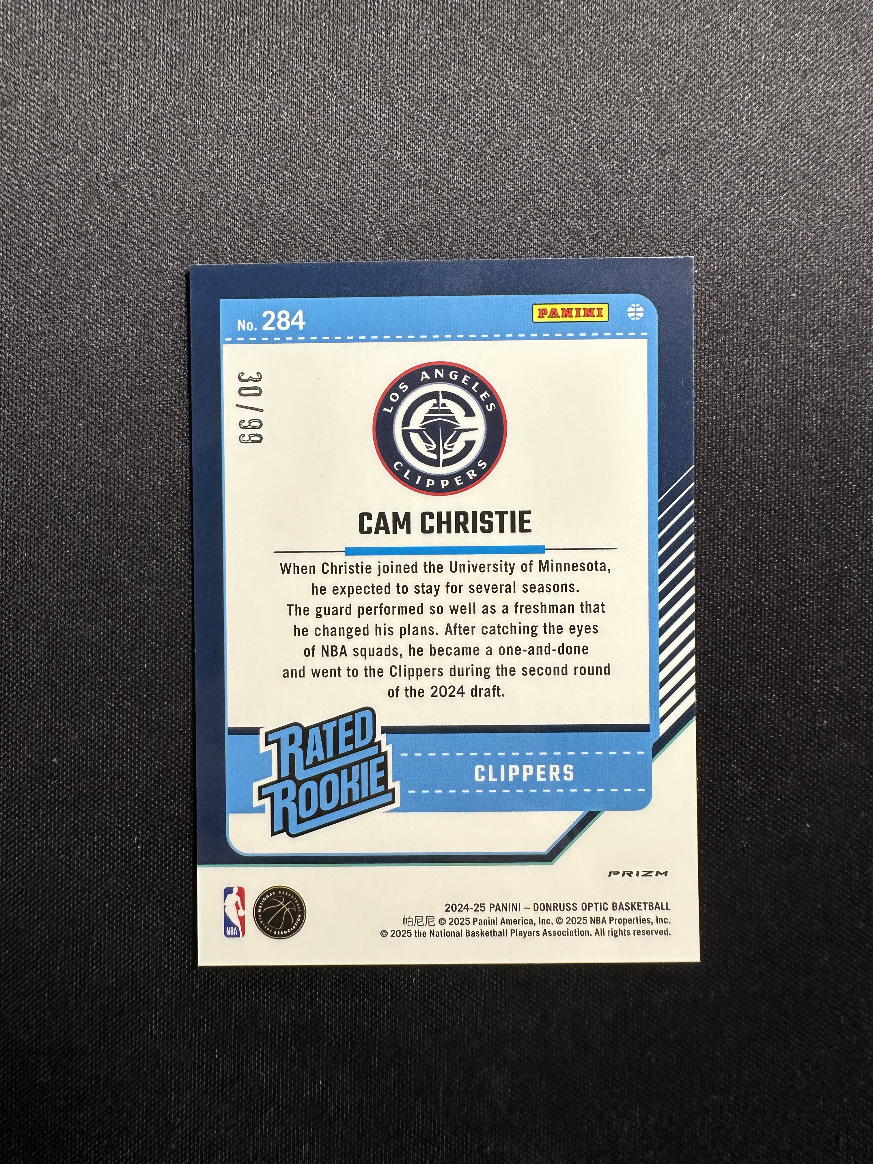 2024-25 Panini Donruss Optic Cam Christie RC 卡姆 克里斯蒂 快船 新秀 杜蕾斯OP 99编 折射 红金圈圈折 卡品如图【四小只】