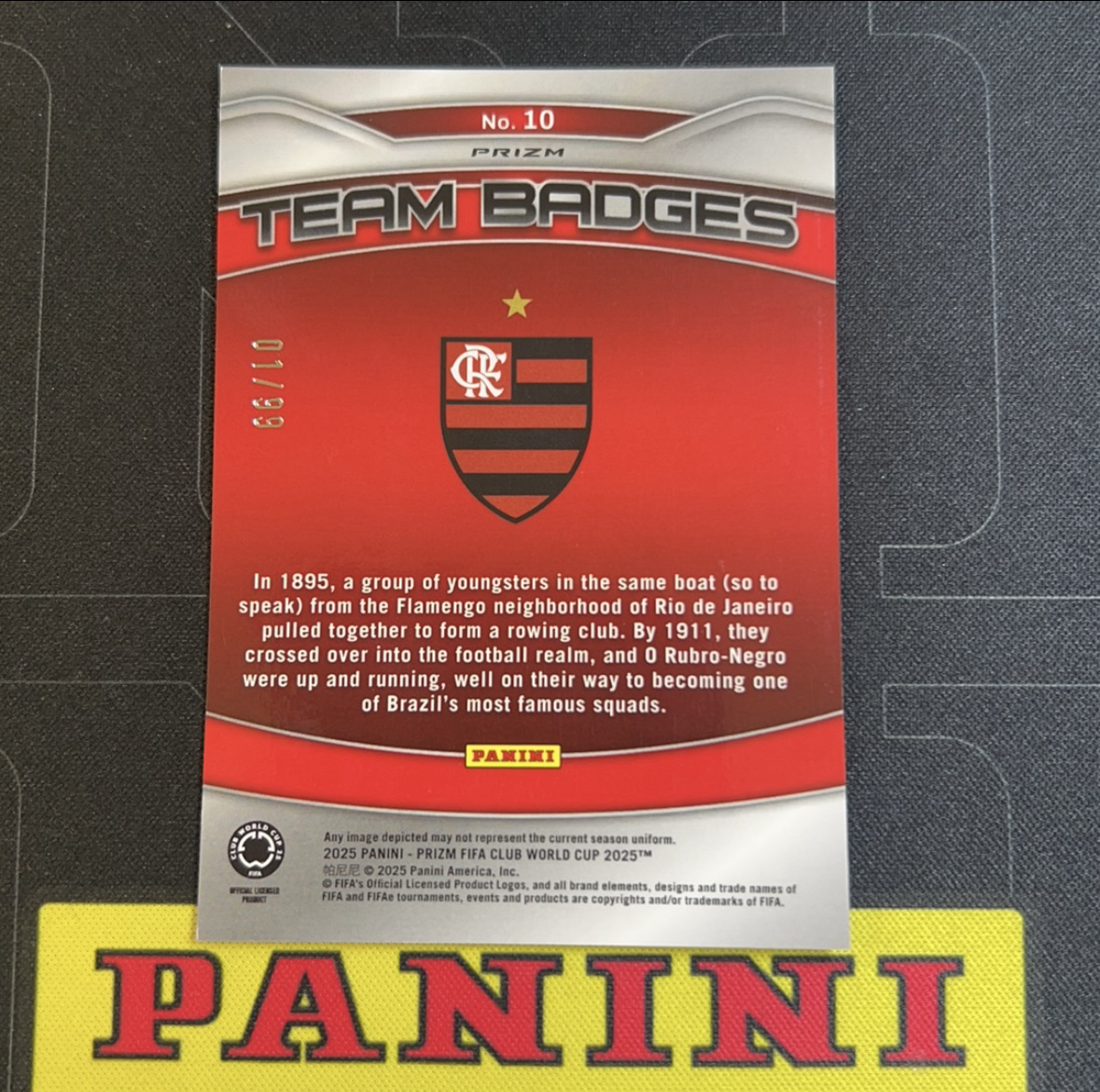 【风速狗】2025 Panini Prizm Club World Cup世俱杯Pz  弗拉门戈 flamengo 队徽 弗拉门戈队徽 蓝碎冰 1/99编 Team Badges 凑套收藏 轻印 仙林