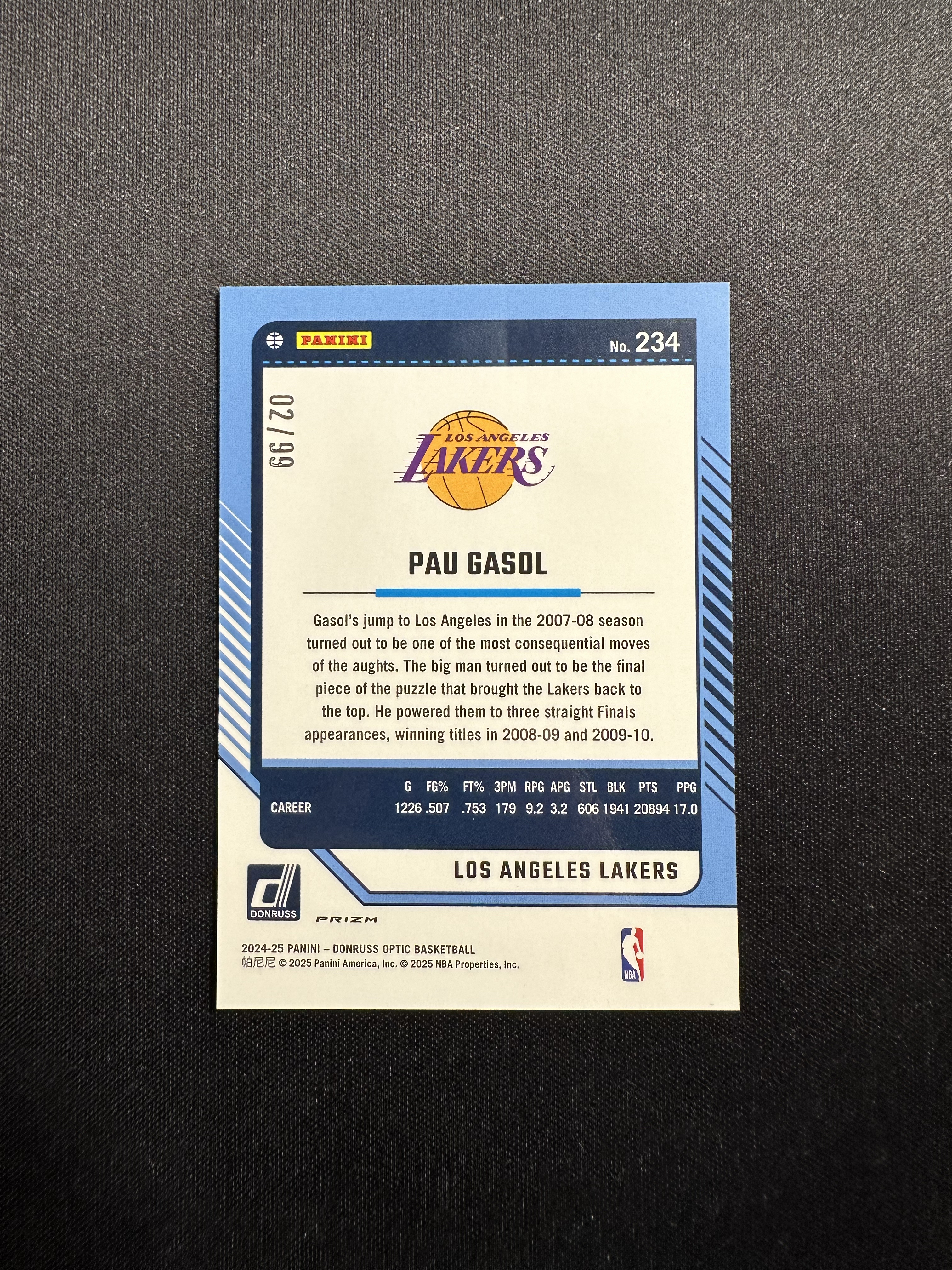 2024-25 Panini Donruss optic Pau Gasol 杜蕾斯op 名宿 湖人 /99编 保罗 加索尔 加嫂 大加索尔 红金圈圈折 卡品见图 【四小只】