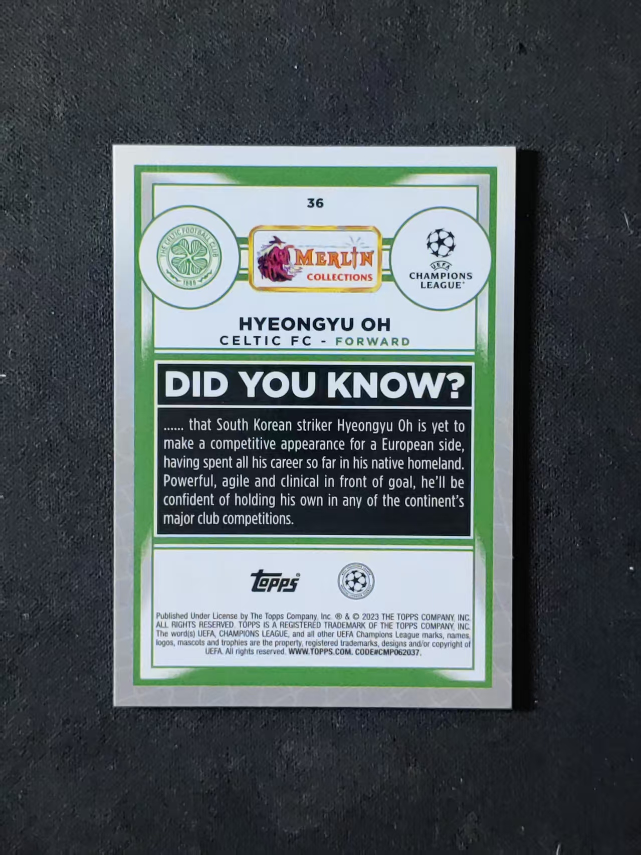 2023 Topps Merlin chrome Hyeongyu Oh RC 【林林拍卖布迪尼】梅林系列 欧冠 凯尔特人 新秀 吴贤奎 52/75编 蓝折 base