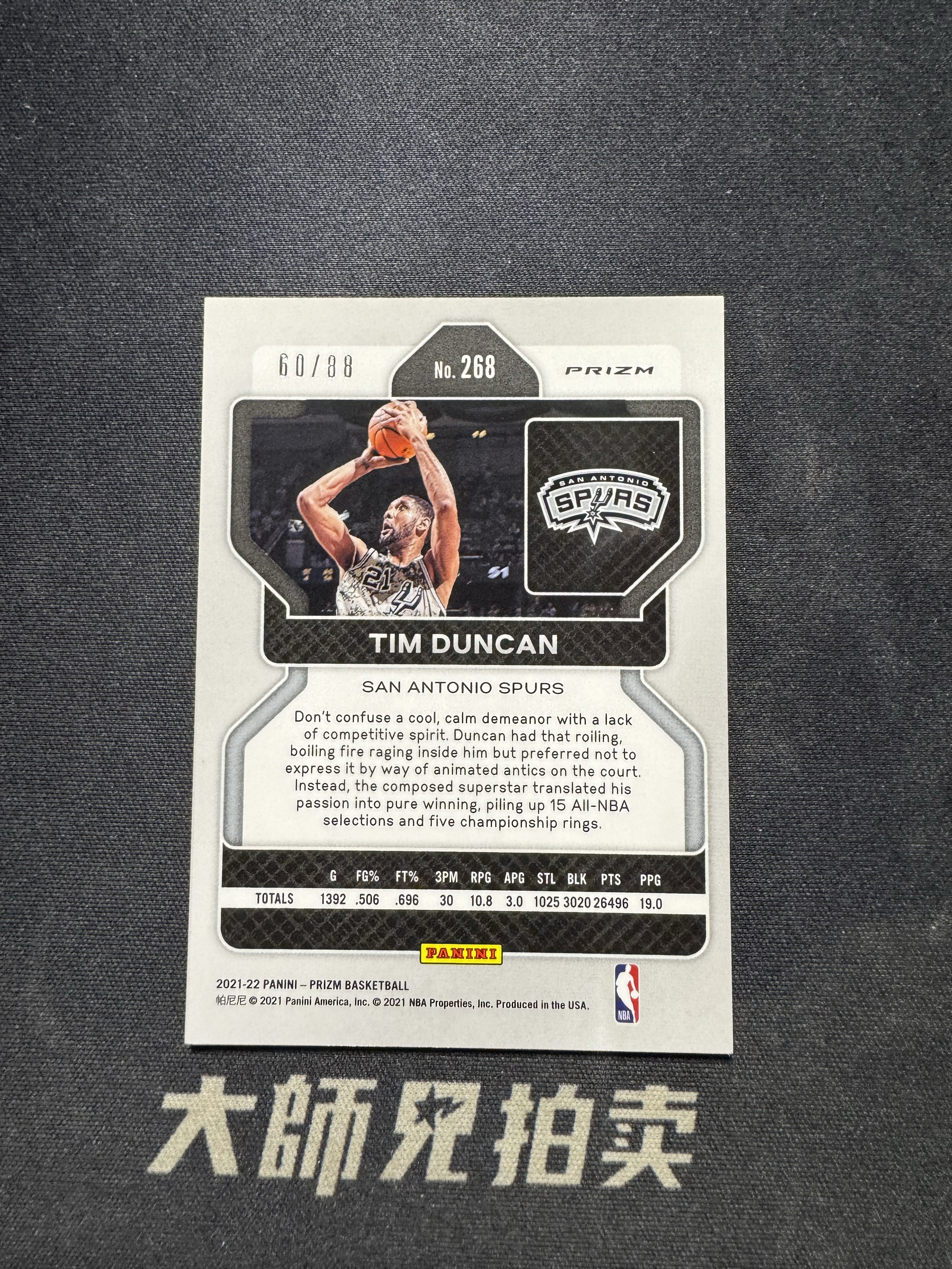 【大师兄拍卖】2021-22 Panini prizm TIM DUNCAN 马刺 蒂姆 邓肯 pz /88编 红圈圈折 通行品 -Norman-