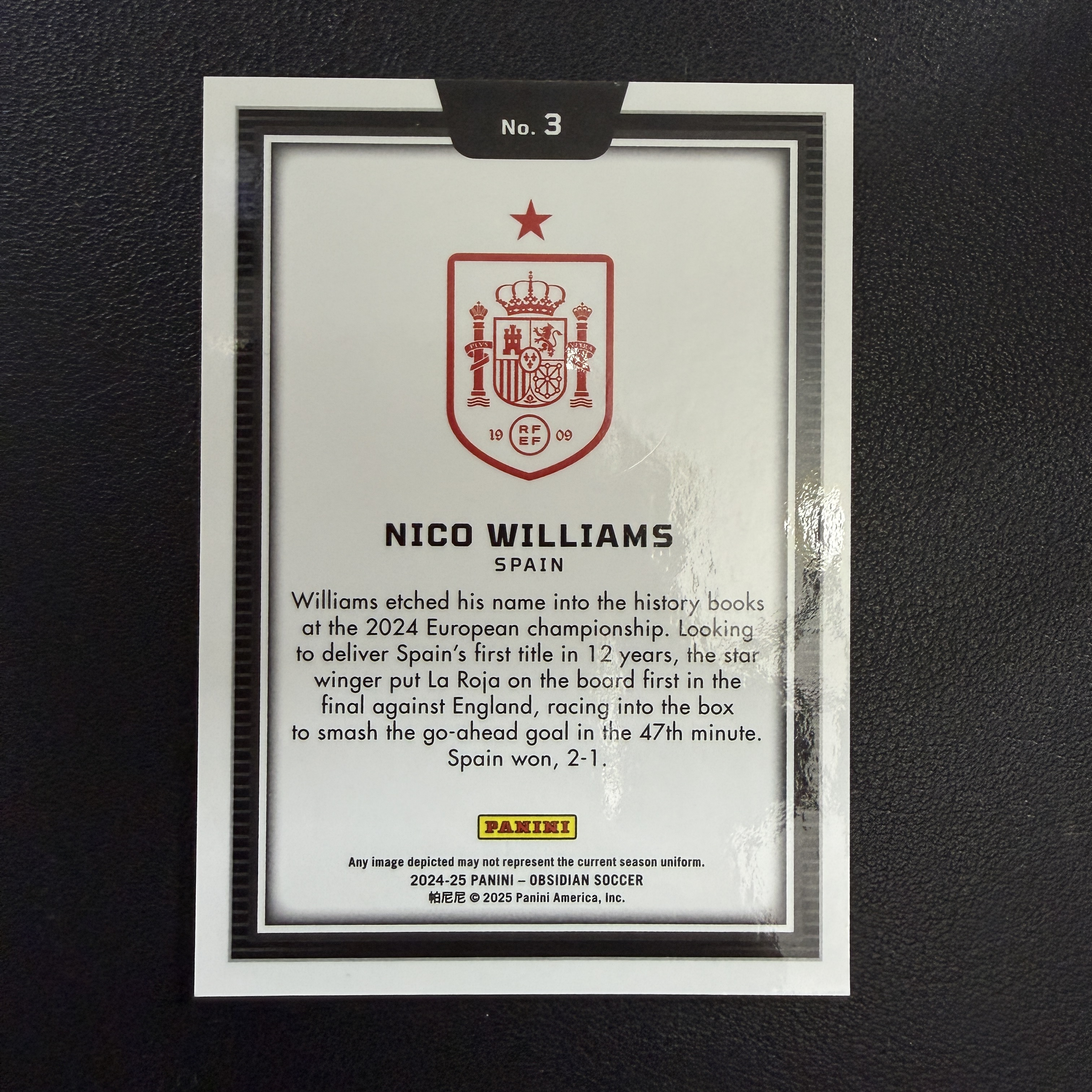 2024-25 Panini Obsidian Nico Williams 尼科 威廉姆斯 西班牙 黑曜石 泼墨 大比例 毕尔巴鄂竞技 欧洲杯冠军 瑕疵如图 极光