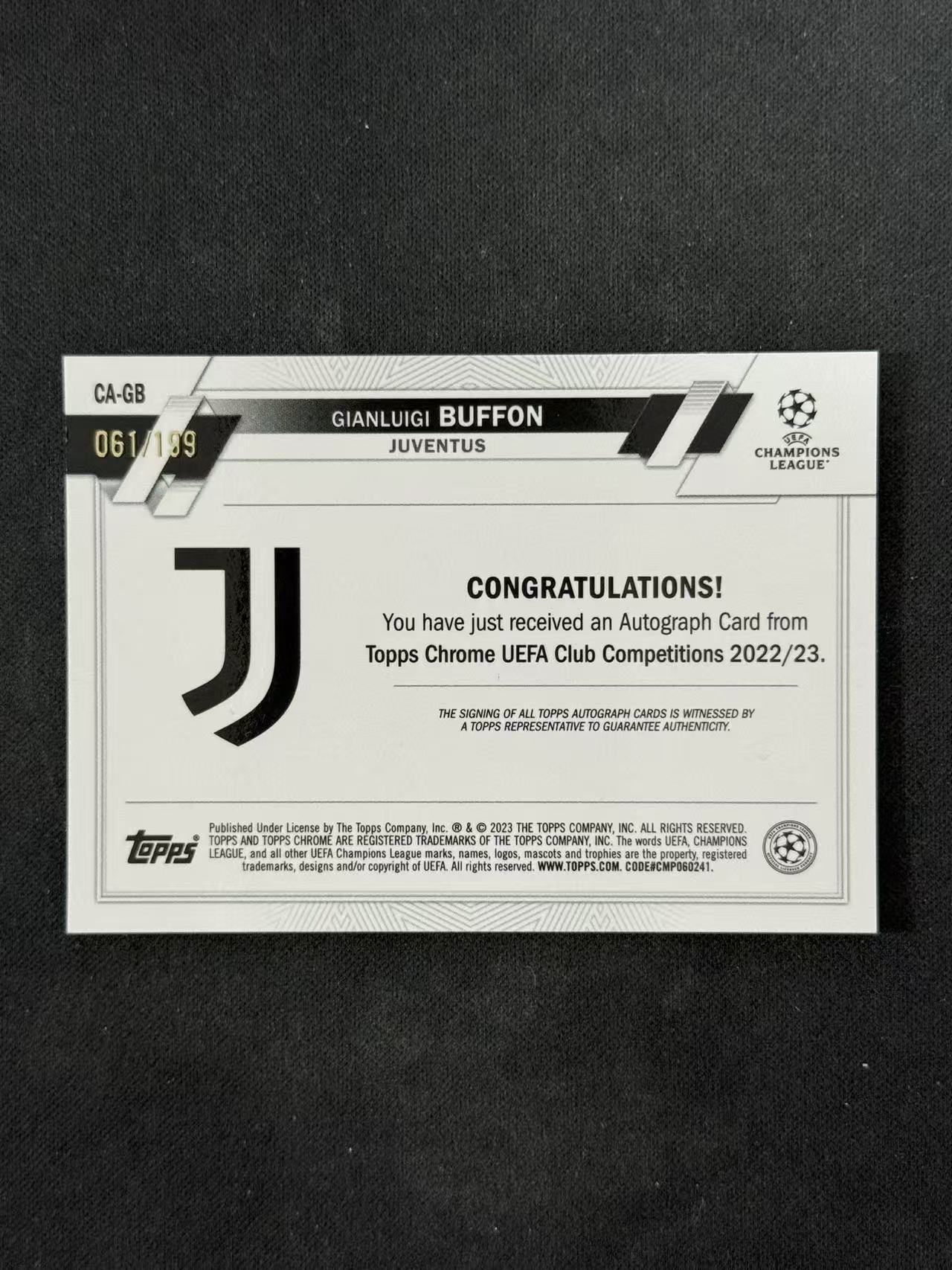 2023 Topps Chrome Gianluigi Buffon 【林林拍卖布迪尼】tc系列 欧冠 尤文图斯 布冯 061/199编 青绿折 签字