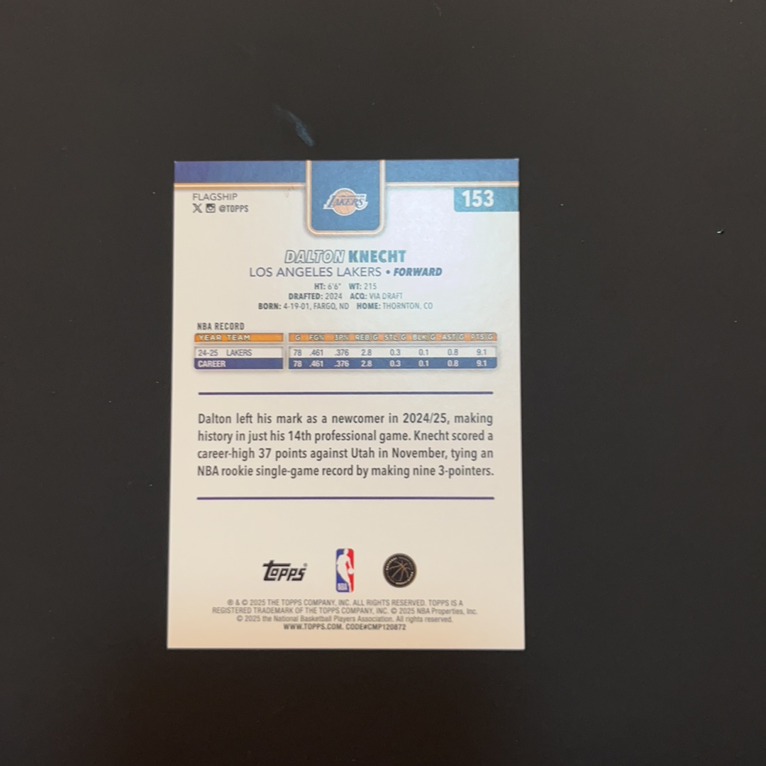 2025 Topps Flagship Dalton Knecht topps 湖人队 多尔顿克内克特 橙折首编!1/25编 卡品如图 肆