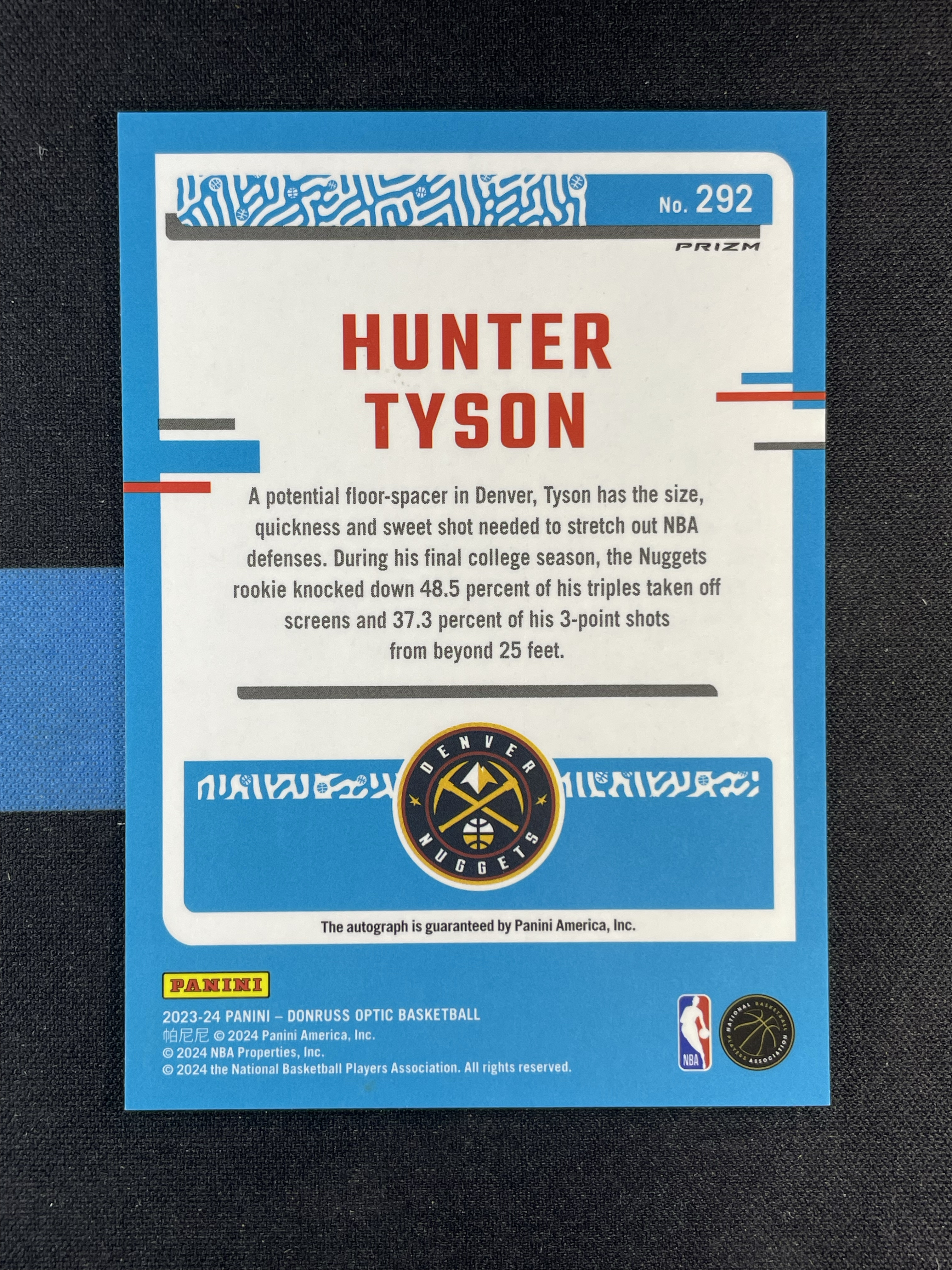 2023-24 Panini Optic Hunter Tyson RC 【ggball代拍】亨特 泰森 optic 熔岩折 新秀 签字 掘金新秀 卡品如图 R总
