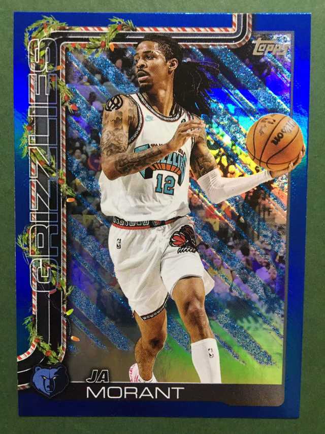 2025 Topps Holiday Ja Morant 假日版 元年 灰熊 贾 莫兰特 枪王 腰王 蓝雪花折 蓝闪折 折射 圣诞版base 全明星 锡安同届 扎克伊迪 威尔斯队友 卡品如图#冯