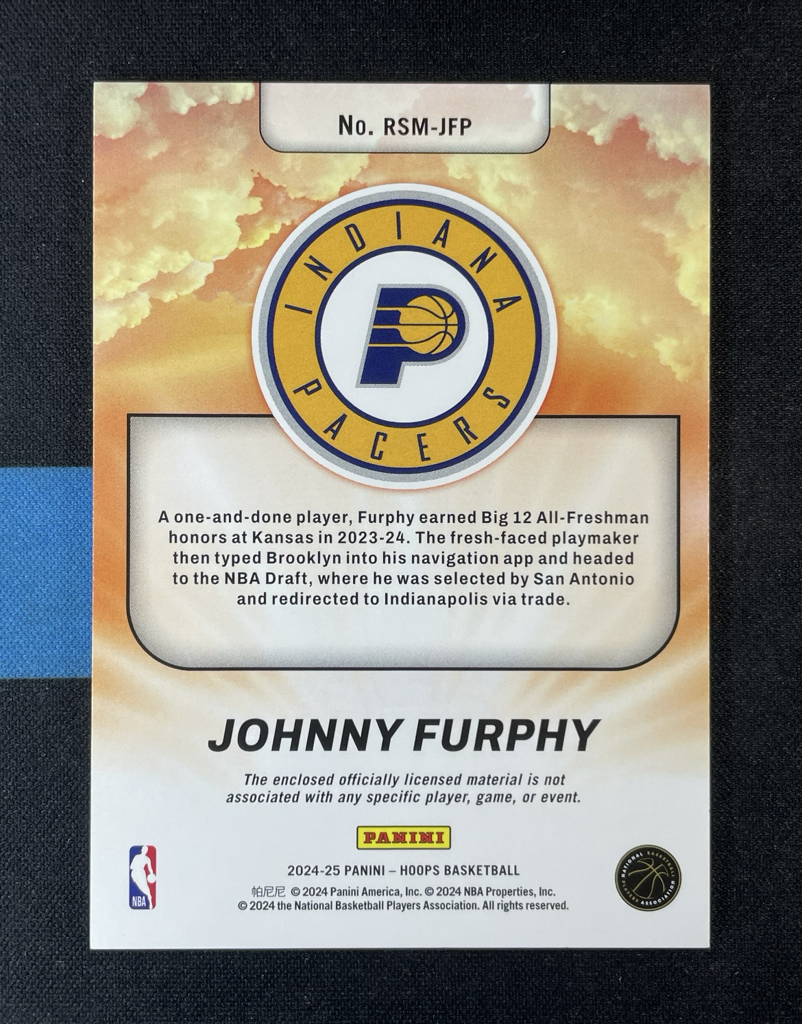 2024-25 Panini NBA Hoops Johnny Furphy RC 【ggball代拍】约翰尼 弗菲 hoops 新秀 球衣 物料 步行者 非签字 卡品如图
