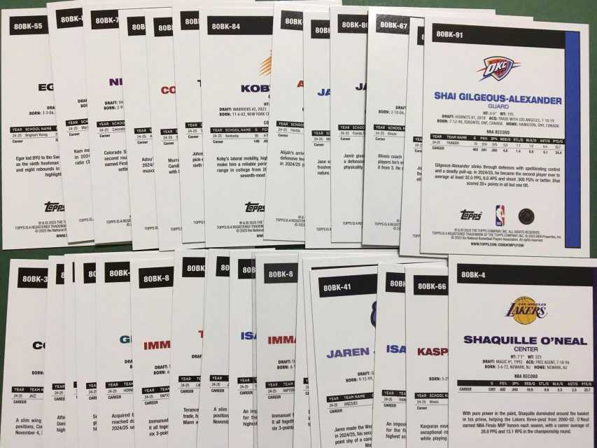 2025 Topps Flagship Shai Gilgeous-Alexander 元年 多队 新秀RC 雷霆 sga亚历山大 湖人 大鲨鱼 奥尼尔 45周年 复古base 30张lot 不保卡品