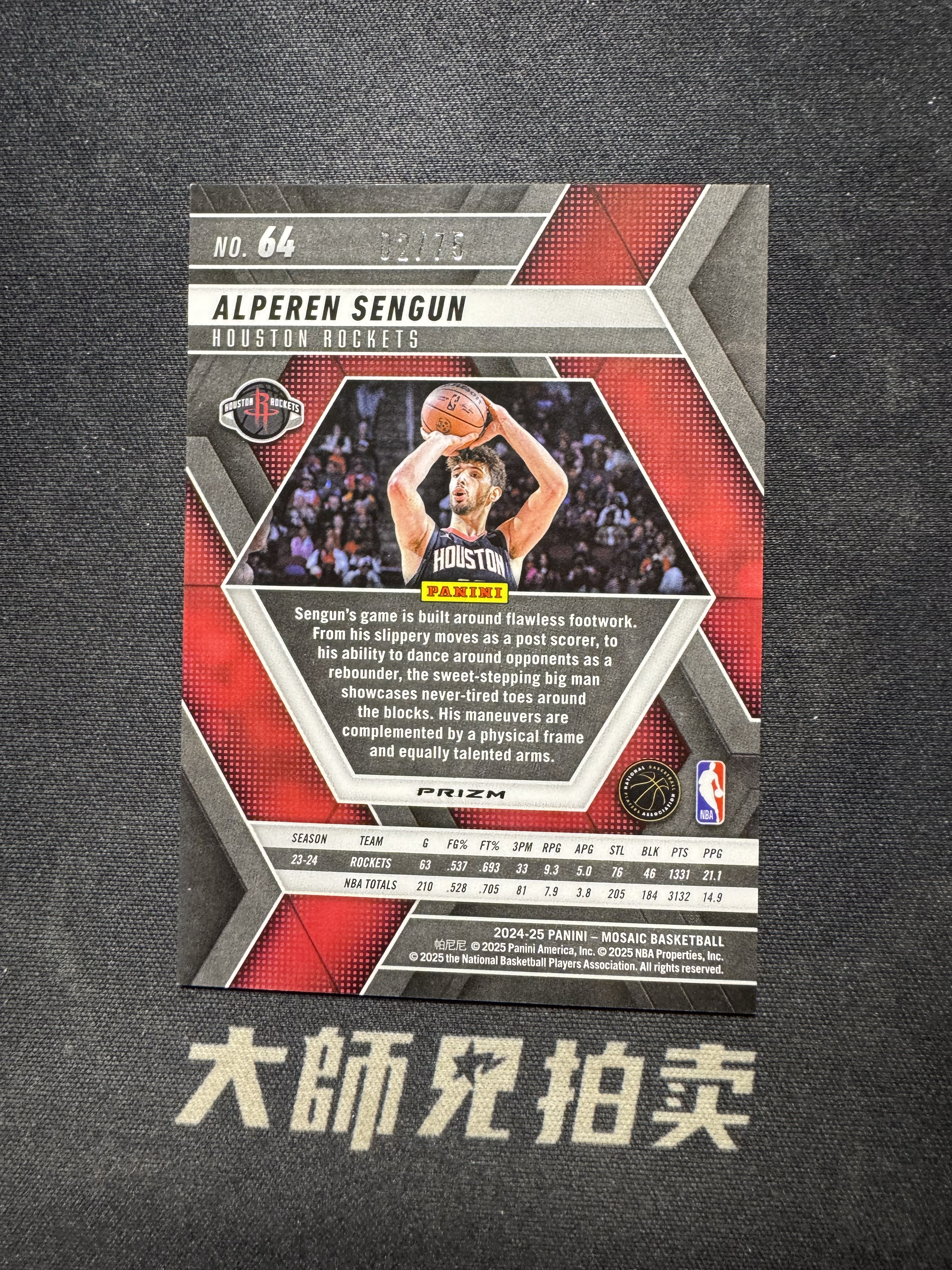 【大师兄拍卖】2024-25 Panini mosaic ALPEREN SENGUN 火箭 阿伦佩 申京 马赛克 /75编 红金折 折射 通行品 -Norman-