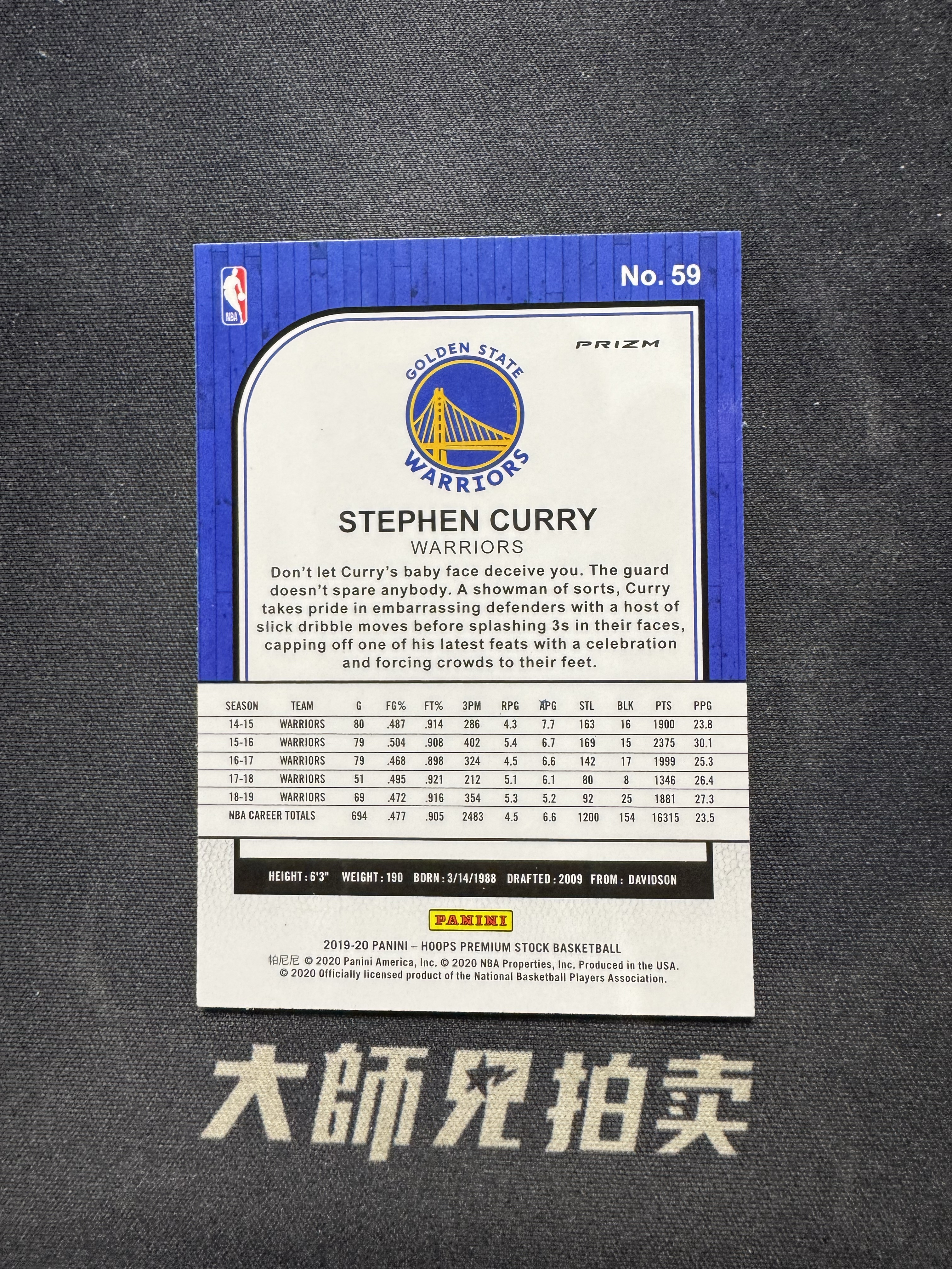 【大师兄拍卖】2019-20 Panini NBA hoops STEPHEN CURRY 勇士 史蒂芬 库里 蓝碎冰 base 通行品 -Norman-