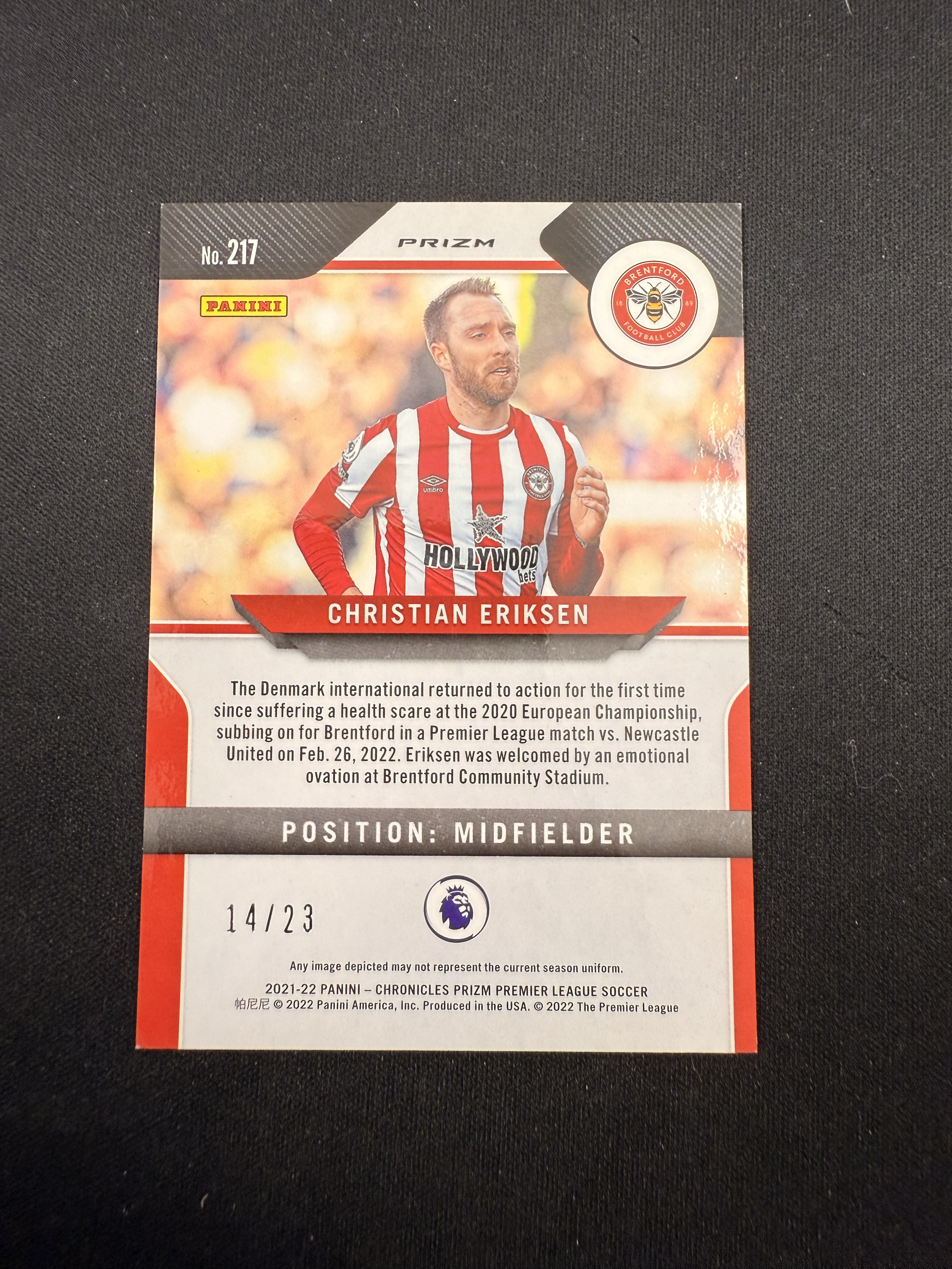 2022 Panini World Cup Prizm Christian Eriksen 编年史pz 埃里克森 14/23编 同背 橙碎冰折 折射 丹麦 微瑕如图 收藏必备