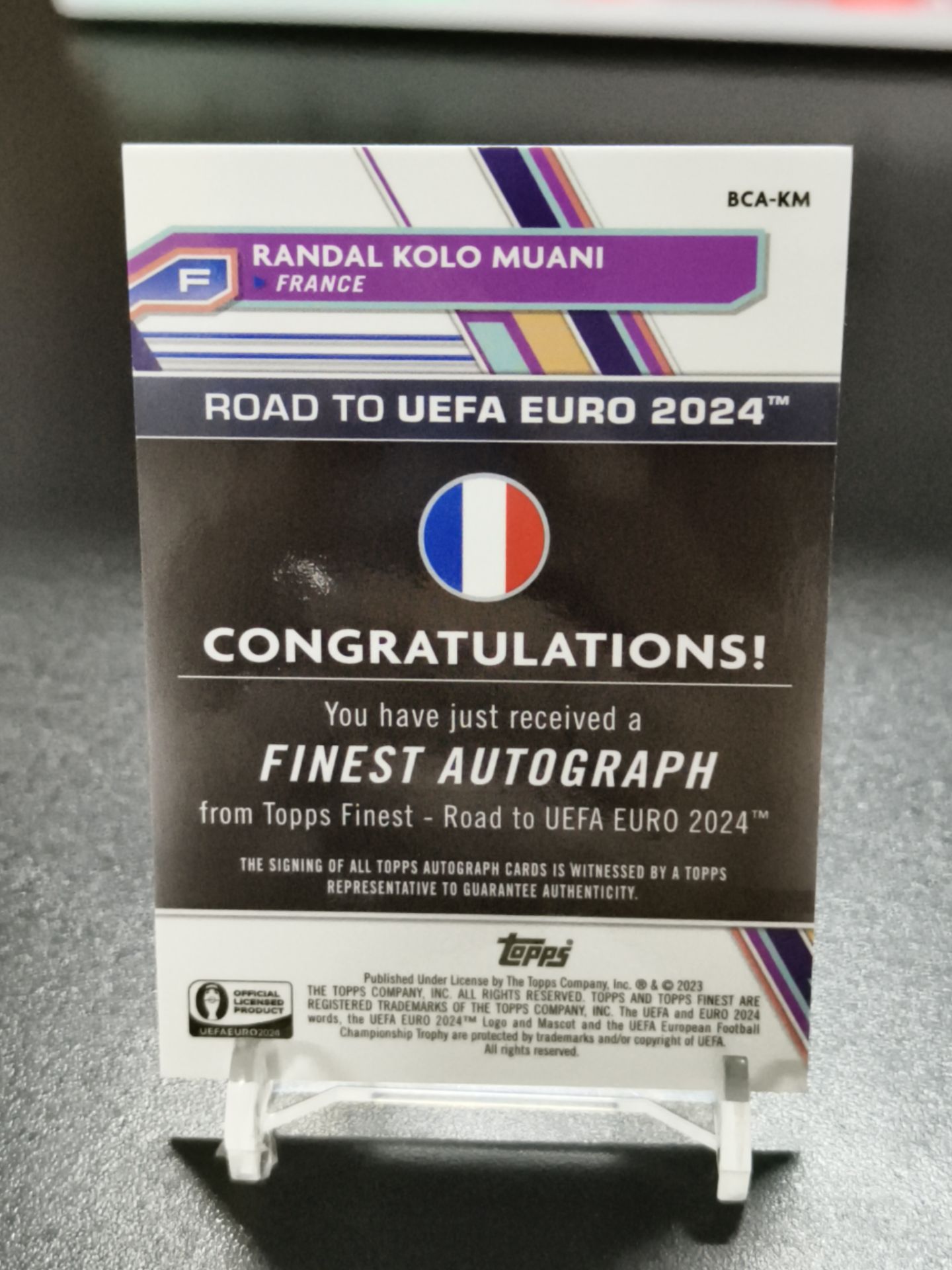 【浩行拍卖 截标预付82%】2023 topps finest randal kolo muani 欧洲杯 法国 朗达尔 科洛 穆阿尼 银折 折射 签字 瑕疵看图 专收必备「凯答」1108K01劉