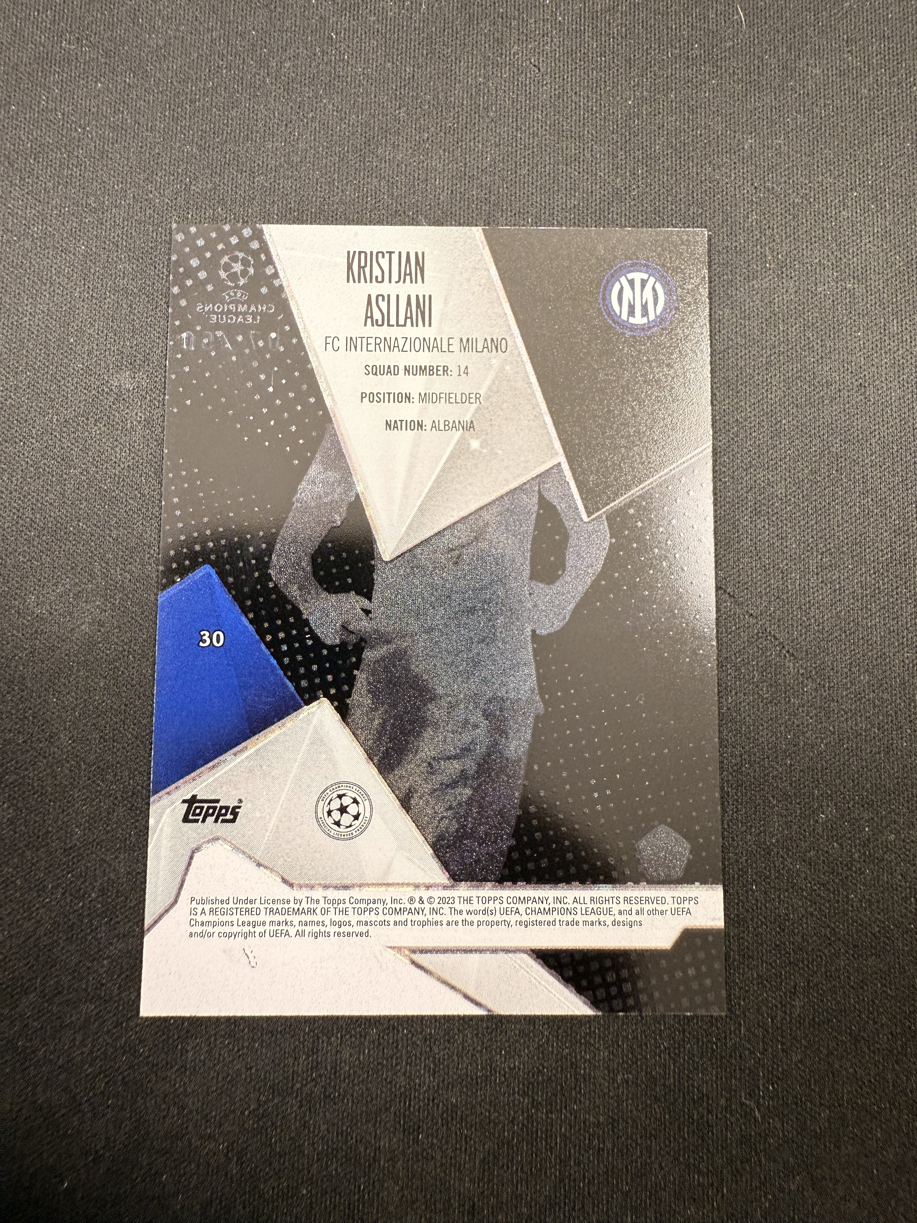 2023 Topps Crystal Kristjan Asllani RC 欧冠 水晶盒 意甲 Serie A 国际米兰 阿斯拉尼 新秀 50编 黑水晶 特卡 卡品如图 凑套收藏必备