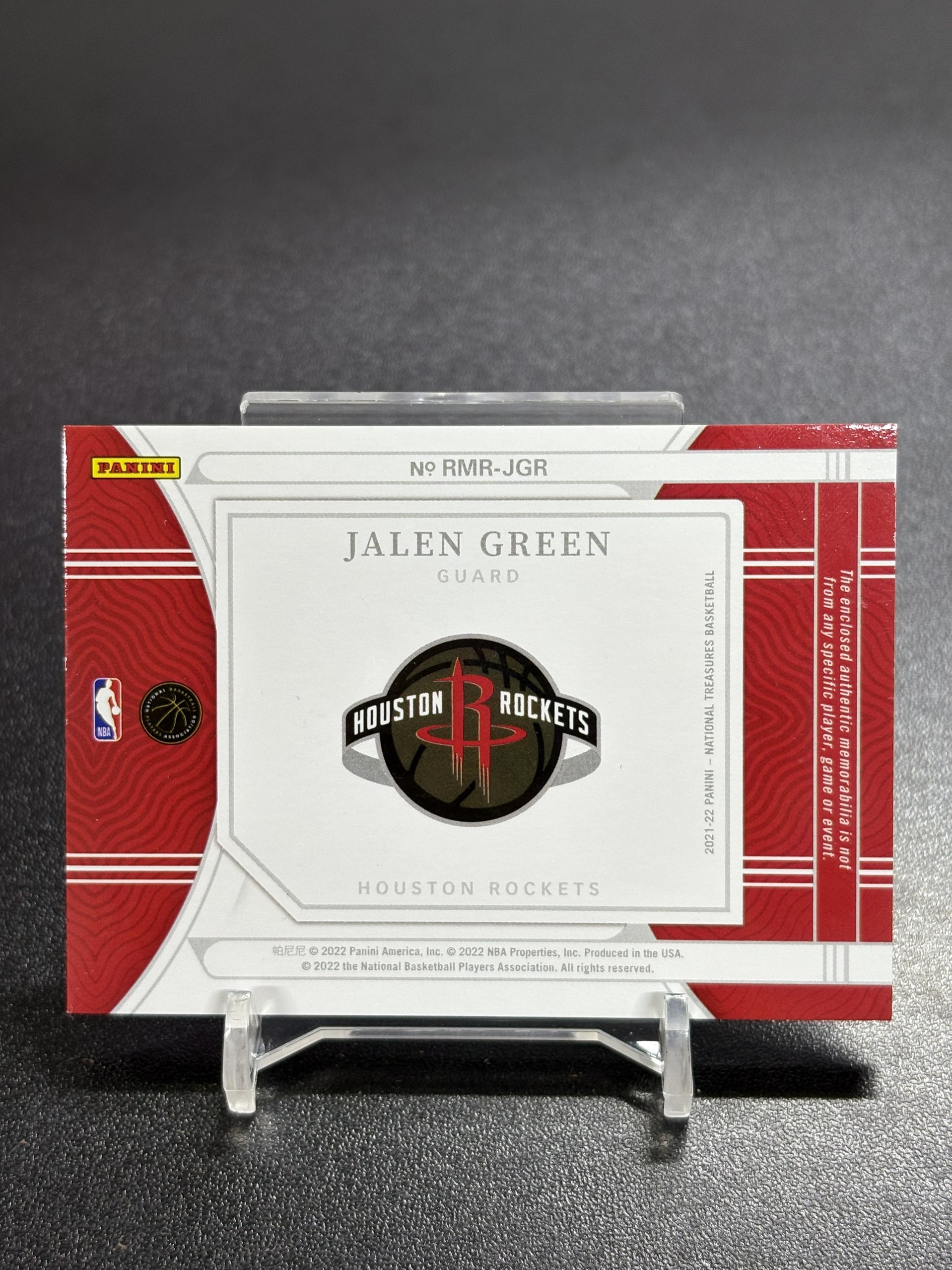 【浩行拍卖 截标预付82%】2021-22 panini National Treasures jalen green 国宝 火箭 杰伦 格林 rc 新秀 球衣 物料 67/99编 瑕疵看图 专收必备「售济」1108S06鍾