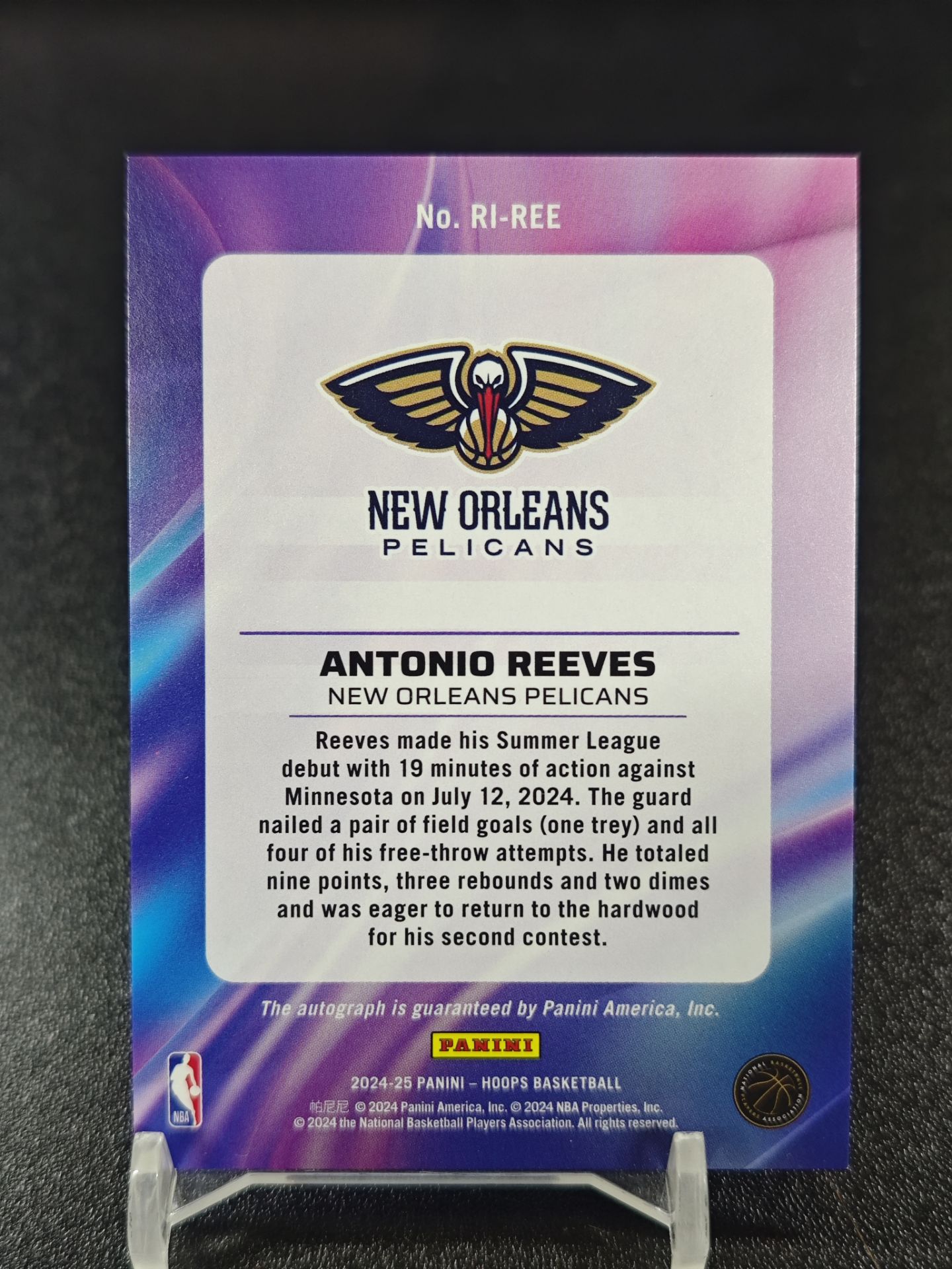 【浩行拍卖 截标预付82%】2024-25 panini hoops antonio reeves 鹈鹕 安东尼奥 里弗斯 rc 新秀 签字 ink签 折射 13/25编 专收必备 瑕疵看图「影展」1108S01單