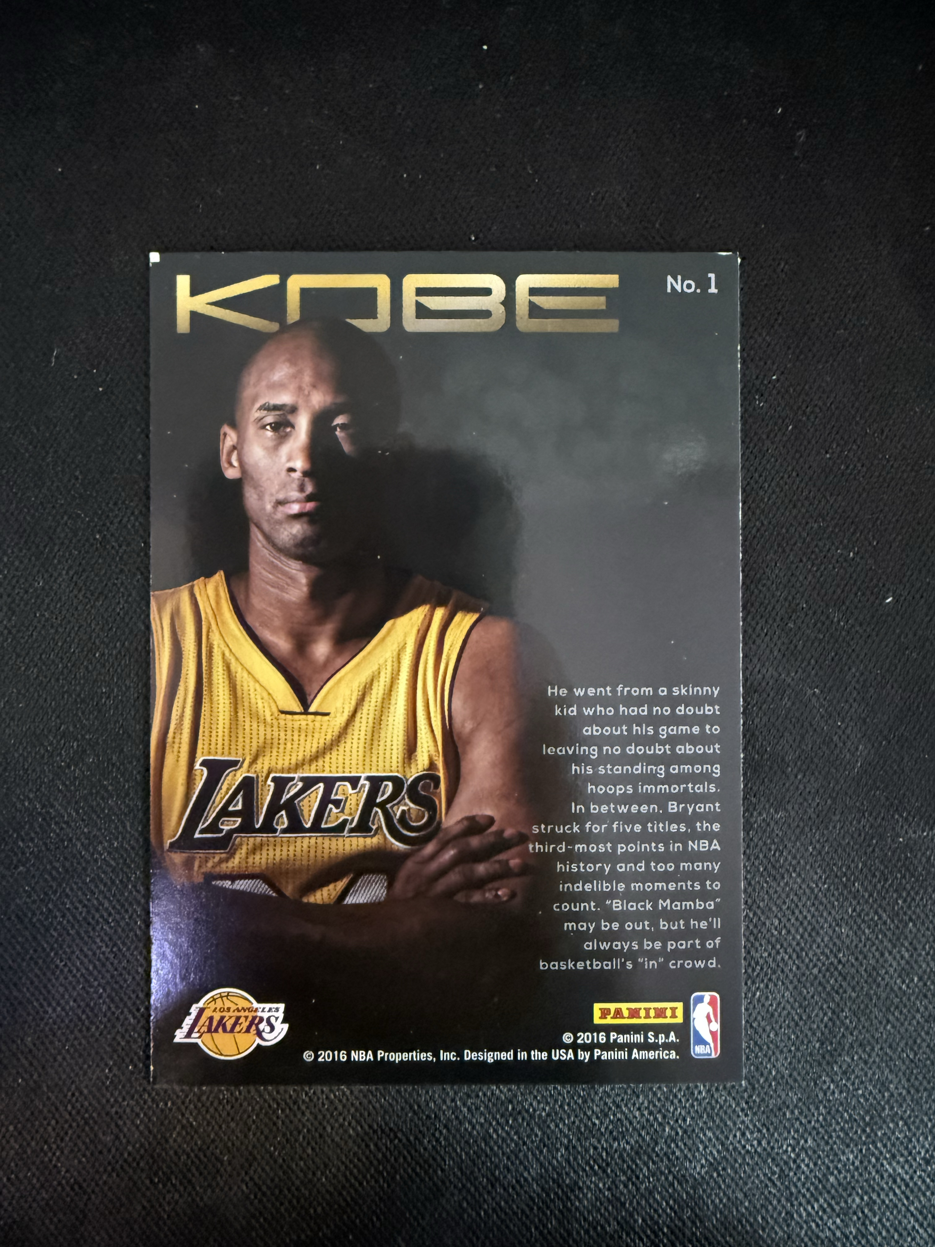 2016 Panini Kobe Bryant Kobe Bryant 湖人 科比布莱恩特 队徽logo聚光灯 亮闪面大比例 黑曼巴 小飞侠 退役告别 经典特卡 永远的老大 收藏必备 卡品如图
