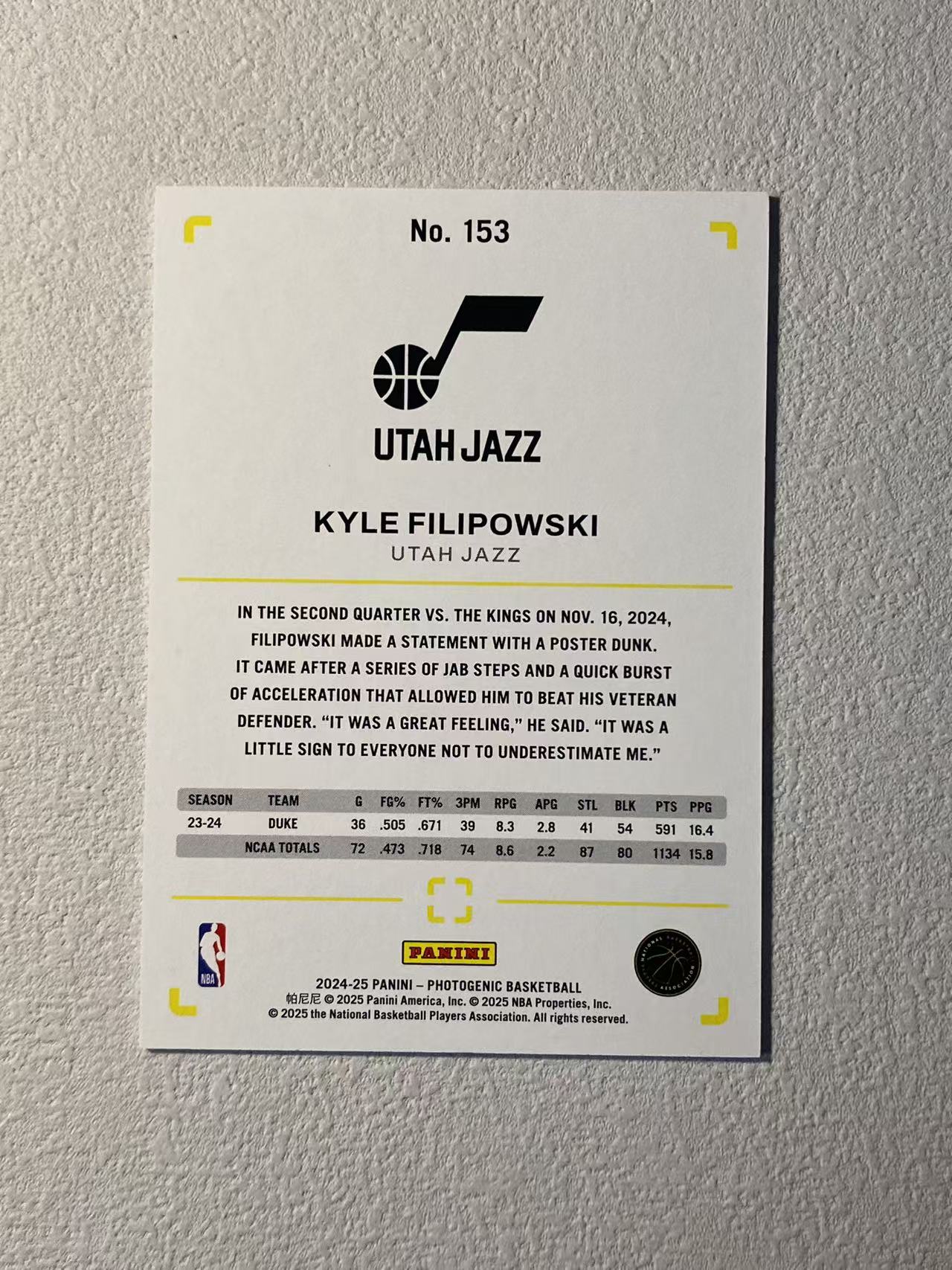2024-25 Panini Photogenic Kyle Filipowski RC 上镜 爵士 新秀rc 菲利波夫斯基 /49编 楔子折 折射 收藏必备
