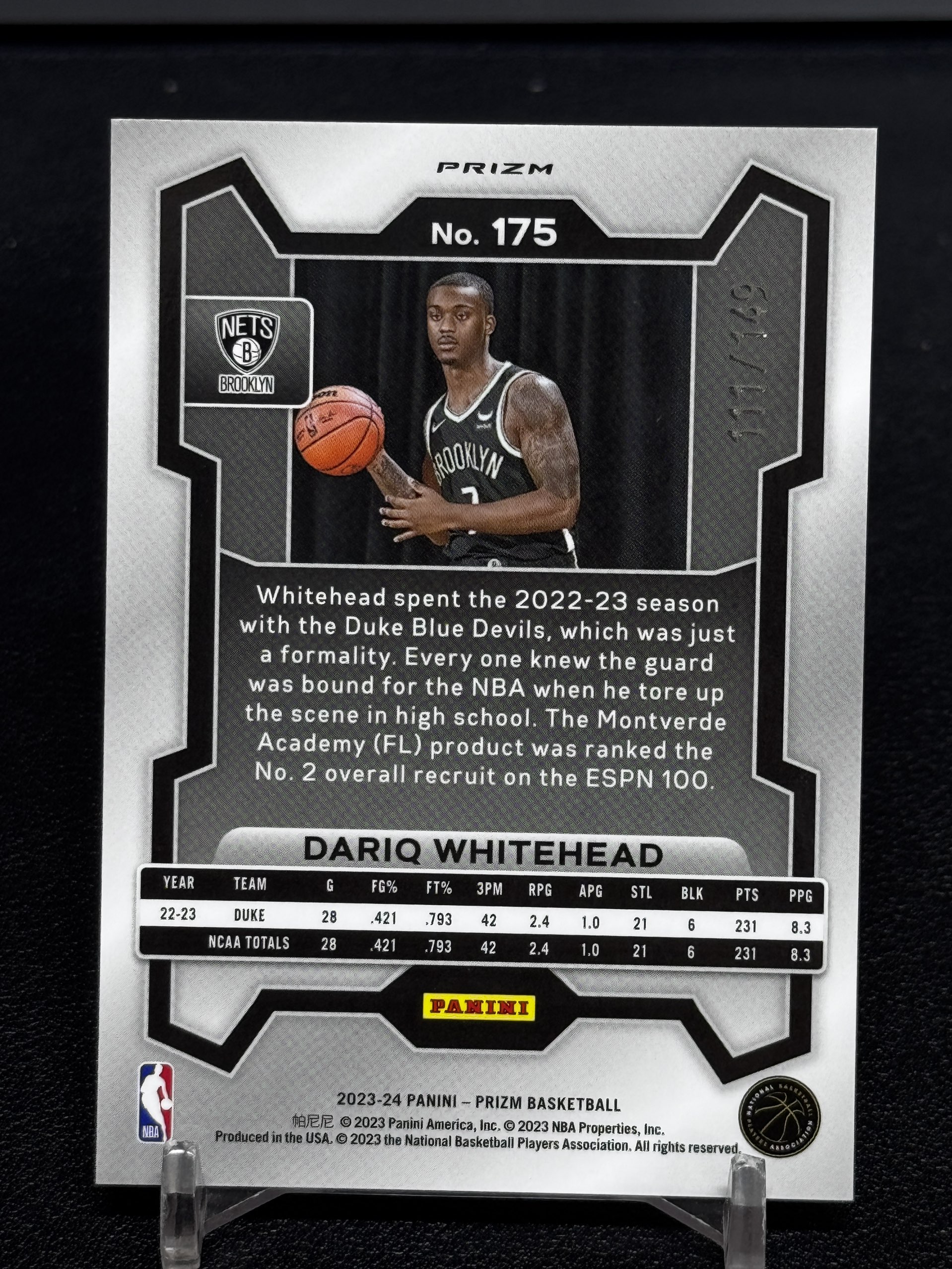 【浩行拍卖 截标预付82%】2023-24 panini prizm dariq whitehead 篮网 怀特黑德 RC 新秀 紫碎冰折 折射 111/149编  专收必备 瑕疵看图「景宜」1108B01裊