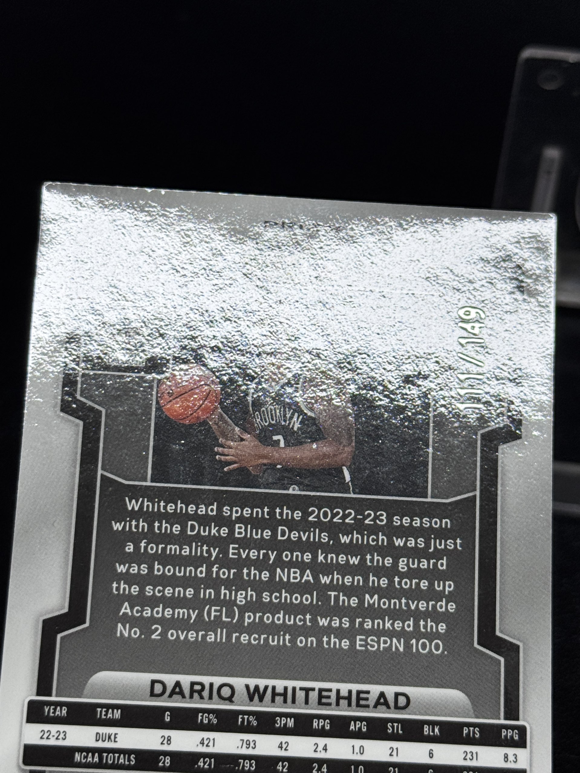 【浩行拍卖 截标预付82%】2023-24 panini prizm dariq whitehead 篮网 怀特黑德 RC 新秀 紫碎冰折 折射 111/149编 专收必备 瑕疵看图「景宜」1108B01裊