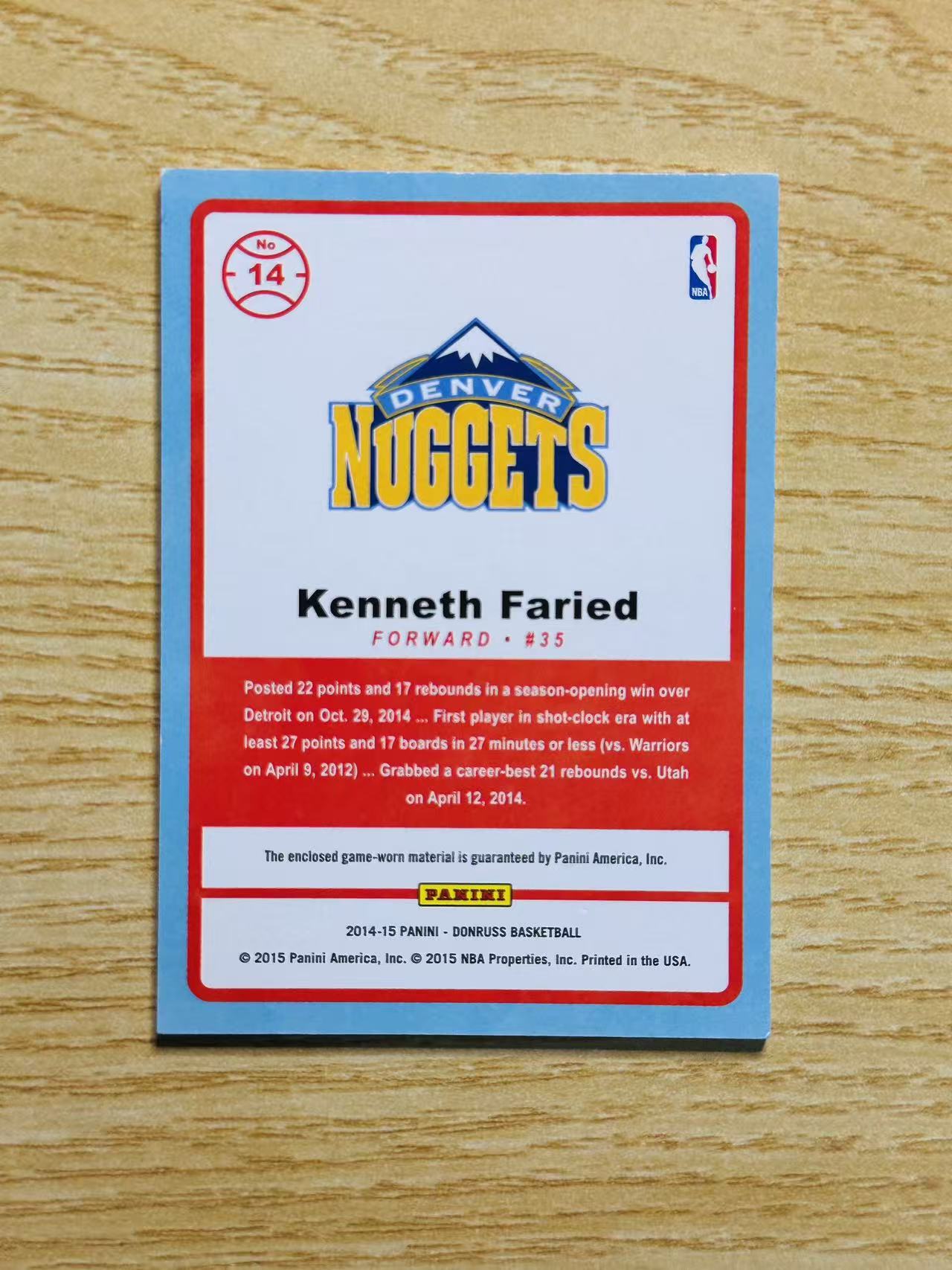 2014-15 Panini Donruss Kenneth Faried 嘿嘿代卖 杜蕾斯 肯尼斯 法里德 球衣 物料 掘金 收藏必备