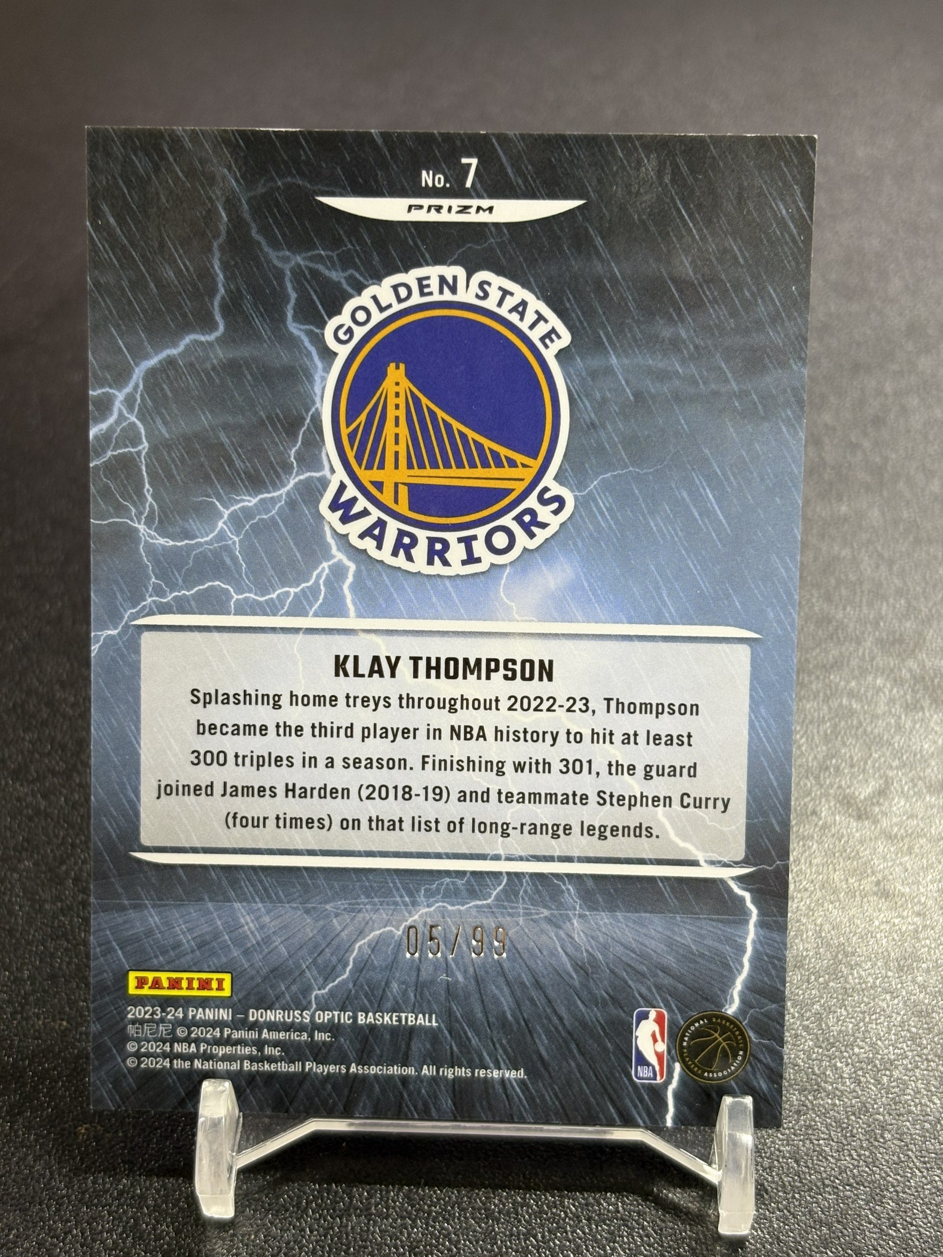 【浩行拍卖 截标预付82%】2023-24 panini donruss optic klay thompson 杜蕾斯 勇士 克莱 汤普森 红折 折射 Raining 3s 三分雨 特卡 5/99编 瑕疵看图「锦桔」1108S06鍾