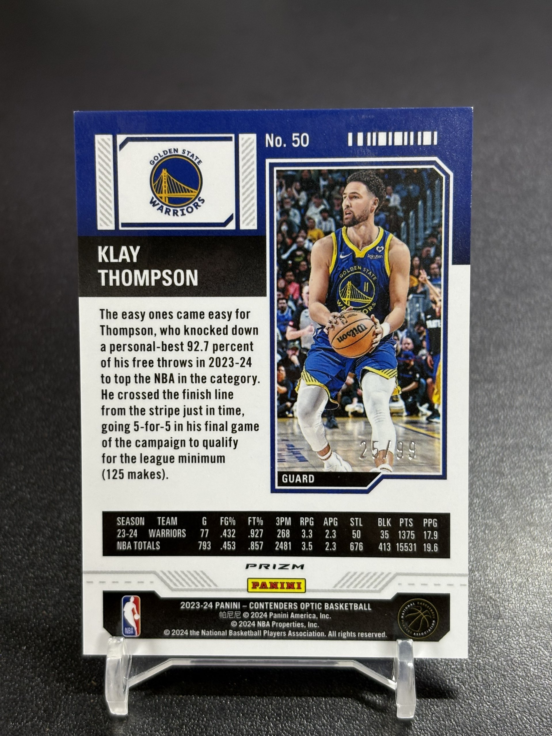 【浩行拍卖 截标预付82%】2023-24 panini contenders optic klay thompson 球票 勇士 克莱 汤普森 蓝折 折射 25/99编 瑕疵看图 专收必备「锦桔」1108S06鍾