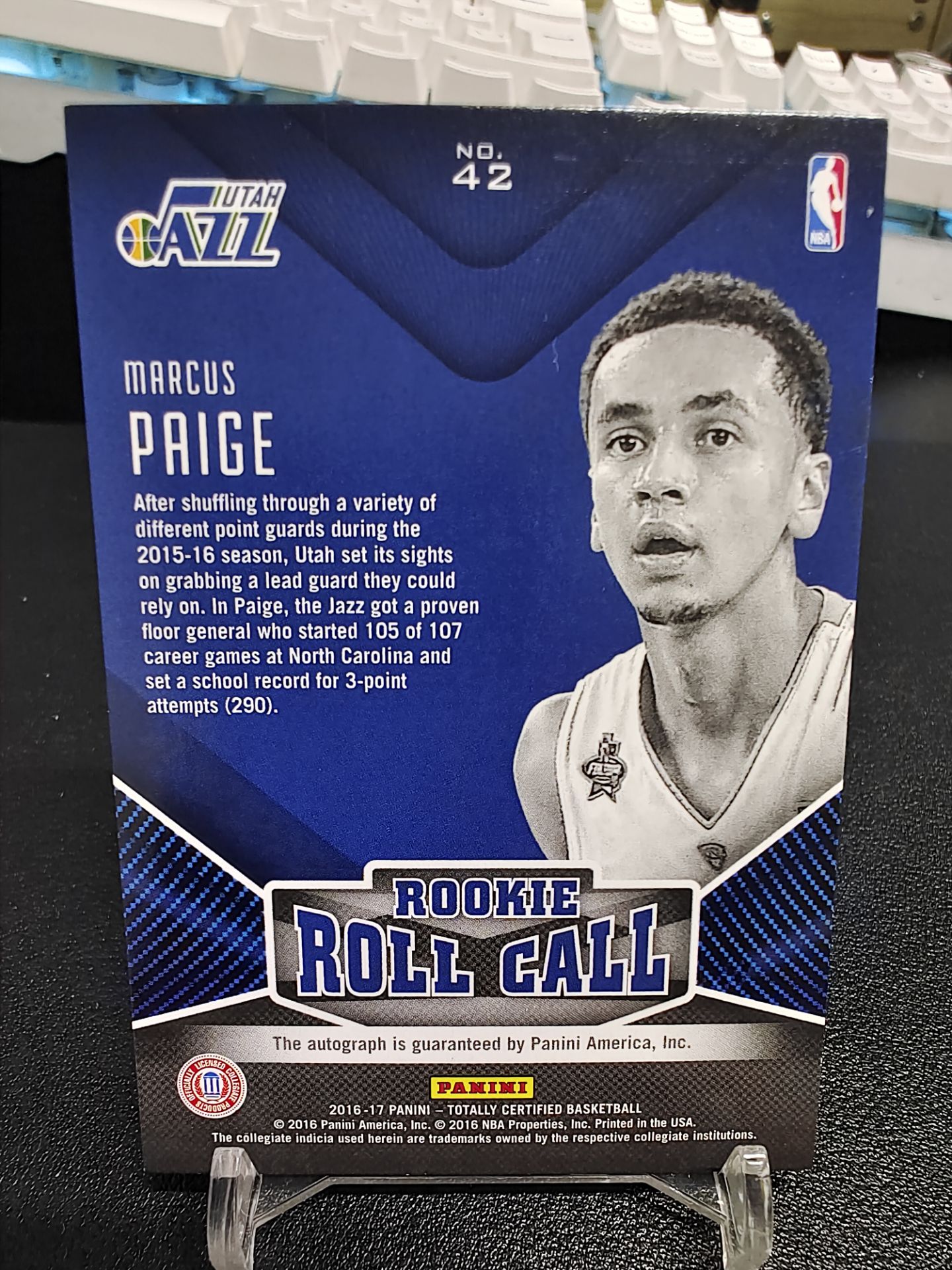 【浩行拍卖 截标预付82%】2016-17 panini totally certified marcus paige 卫生巾 爵士 马库斯 佩吉 新秀 RC 签字 卡签 专收必备 瑕疵看图「博闻」1108E02恁
