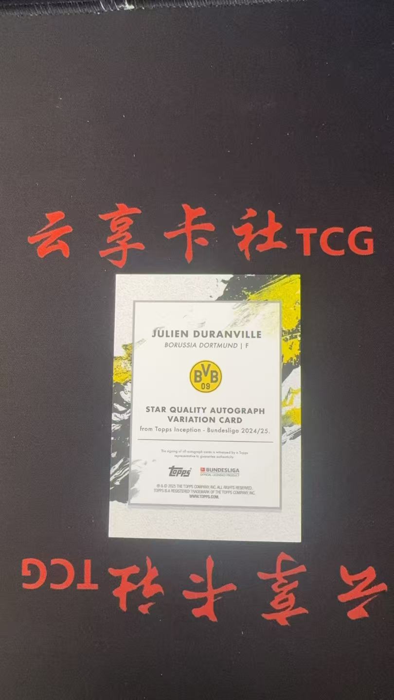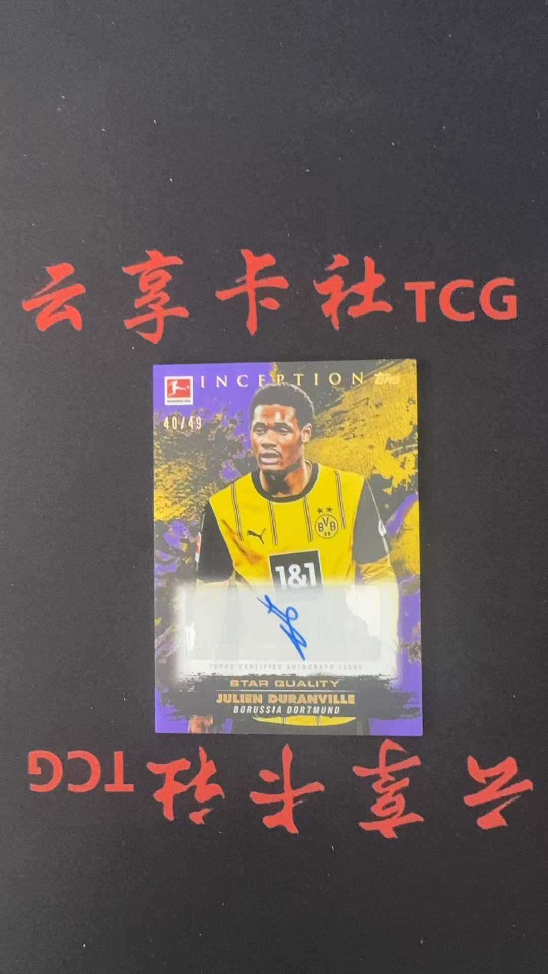 2024-25 Topps Inception Julien Duranville 朱利安 杜兰维尔 比利时 多特蒙德 签字 40/49编 紫平行 德甲 盗梦空间