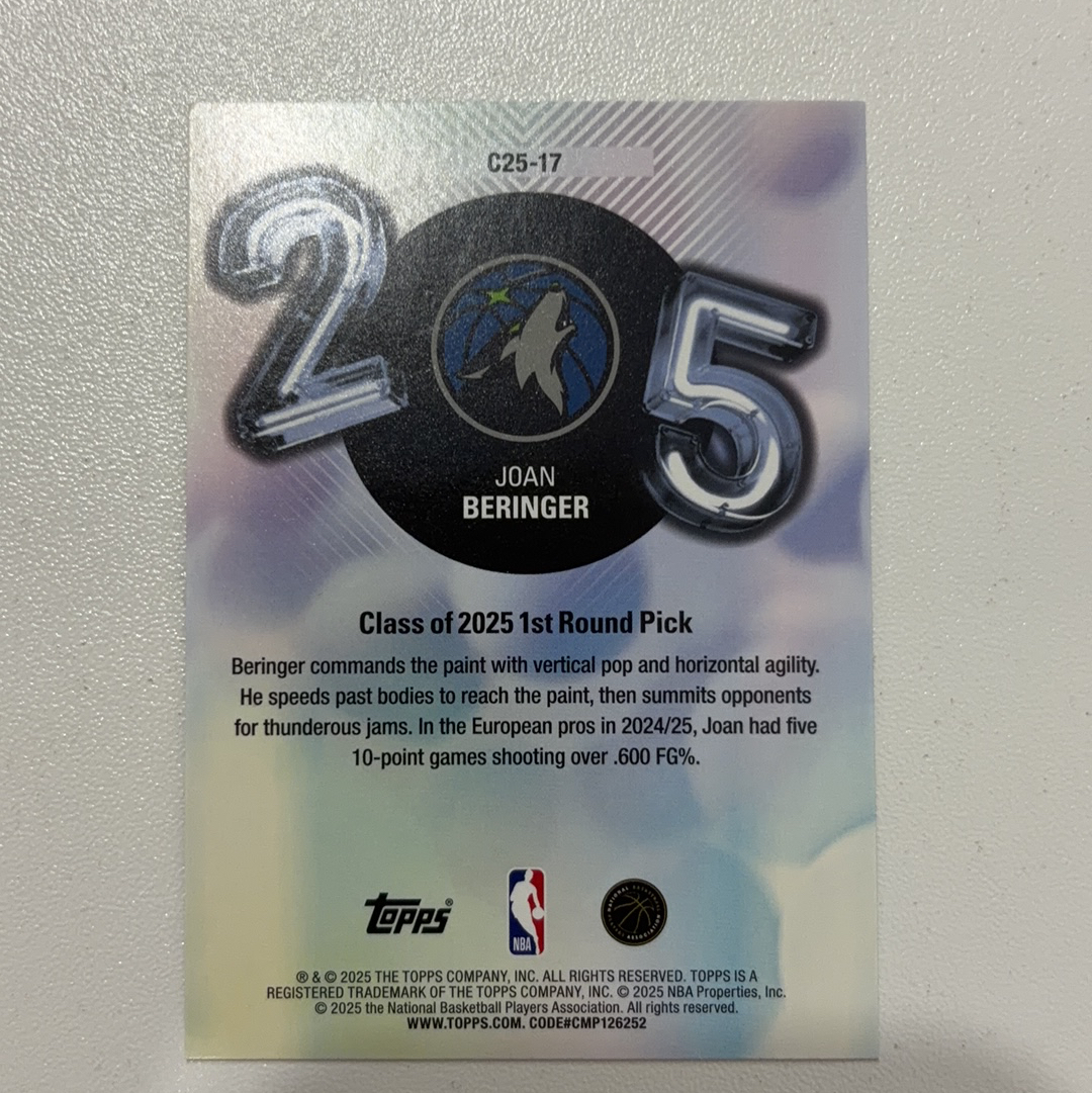 2025-26 Topps Jumbo Joan Beringer Flagship Joan Beringer 新秀RC 若昂 贝兰热 森林狼 Class of'2025银折 大比例 卡品如图