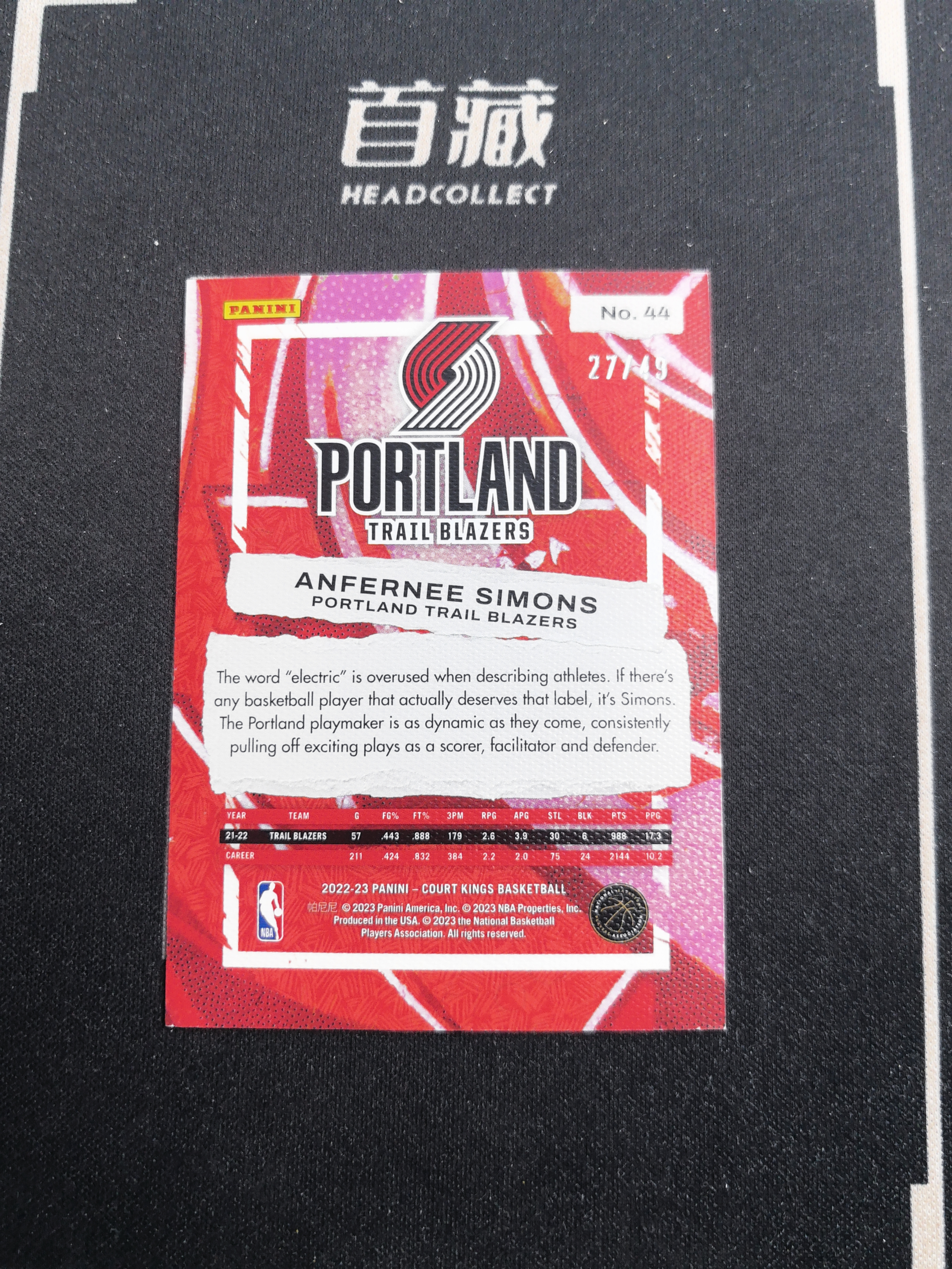 2022-23 Panini Court Kings Anfernee Simons 【橙子拍卖】油画 开拓者 安芬尼 西蒙斯 49编 卡品如图 收藏必备