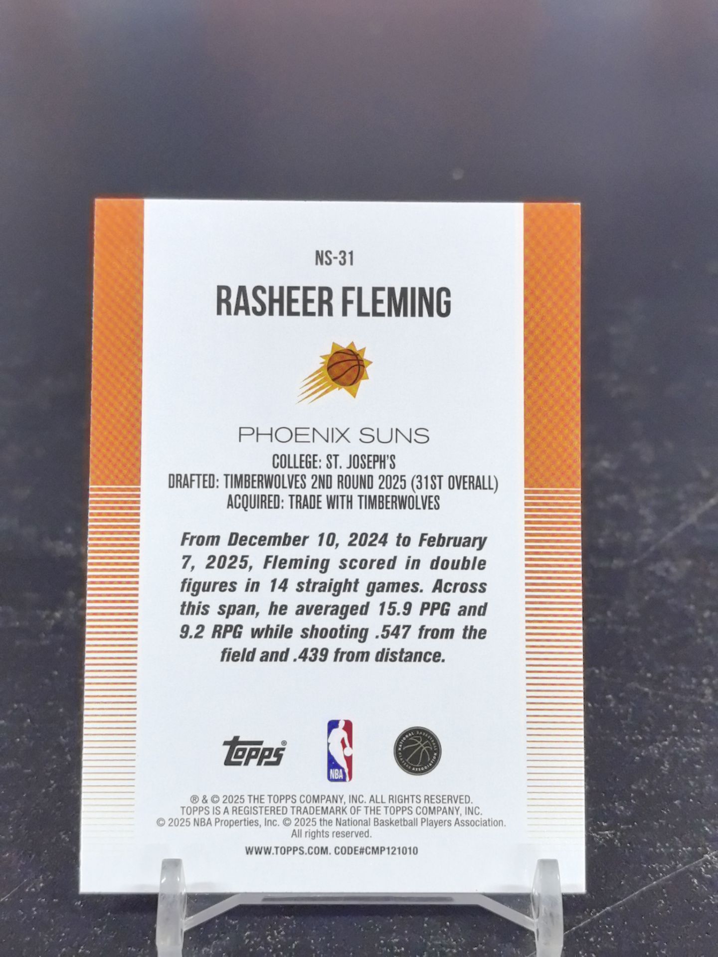 【浩行拍卖 截标预付82%】2025 topps rasheer fleming 太阳 拉希尔 弗莱明 新秀 rc 折射 NEW SCHOOL 特卡 38/99编 专收必备 瑕疵看图「桃梨」1108N01紋
