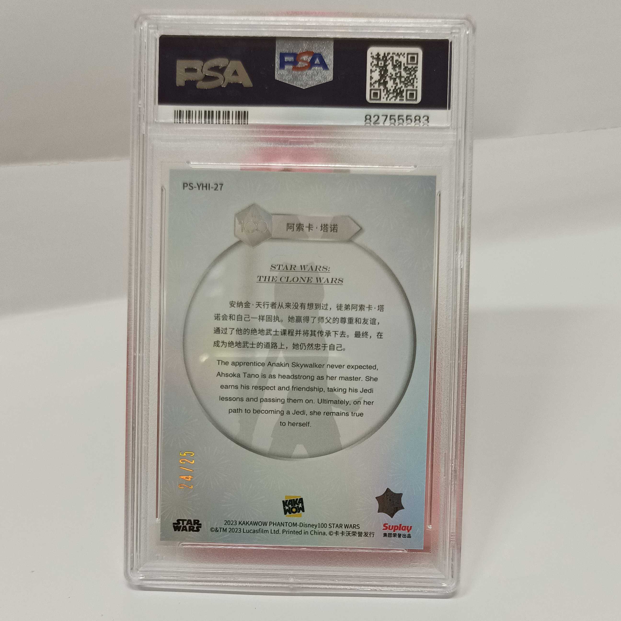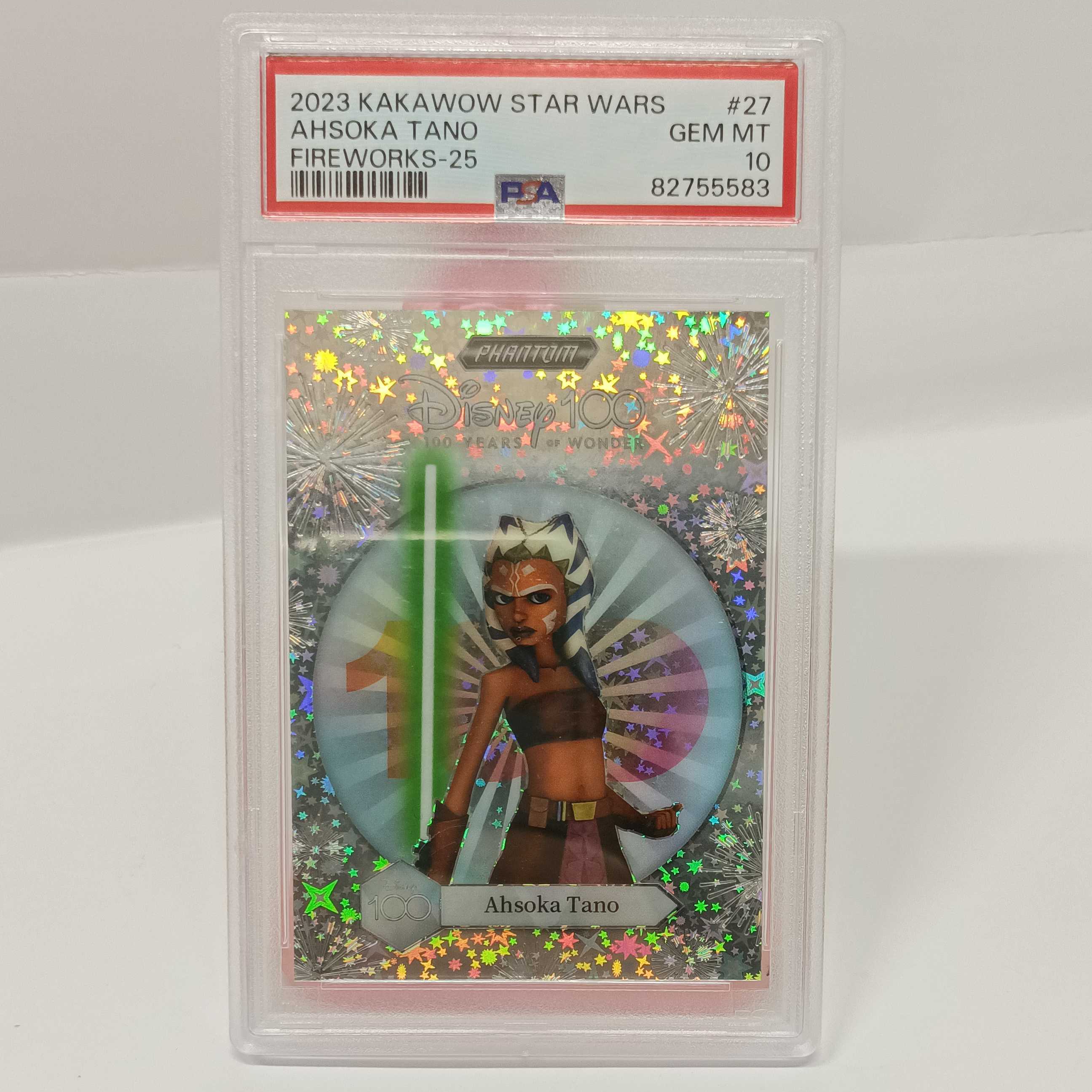 2023 kakawow卡卡沃迪士尼 100周年纪念收藏卡 烟花特卡 全明星系列 漫威 复仇者联盟 星球大战 钢铁侠 阿索卡·塔塔 编号PS-YHI-27 PSA评分10分 24/25 收藏必备