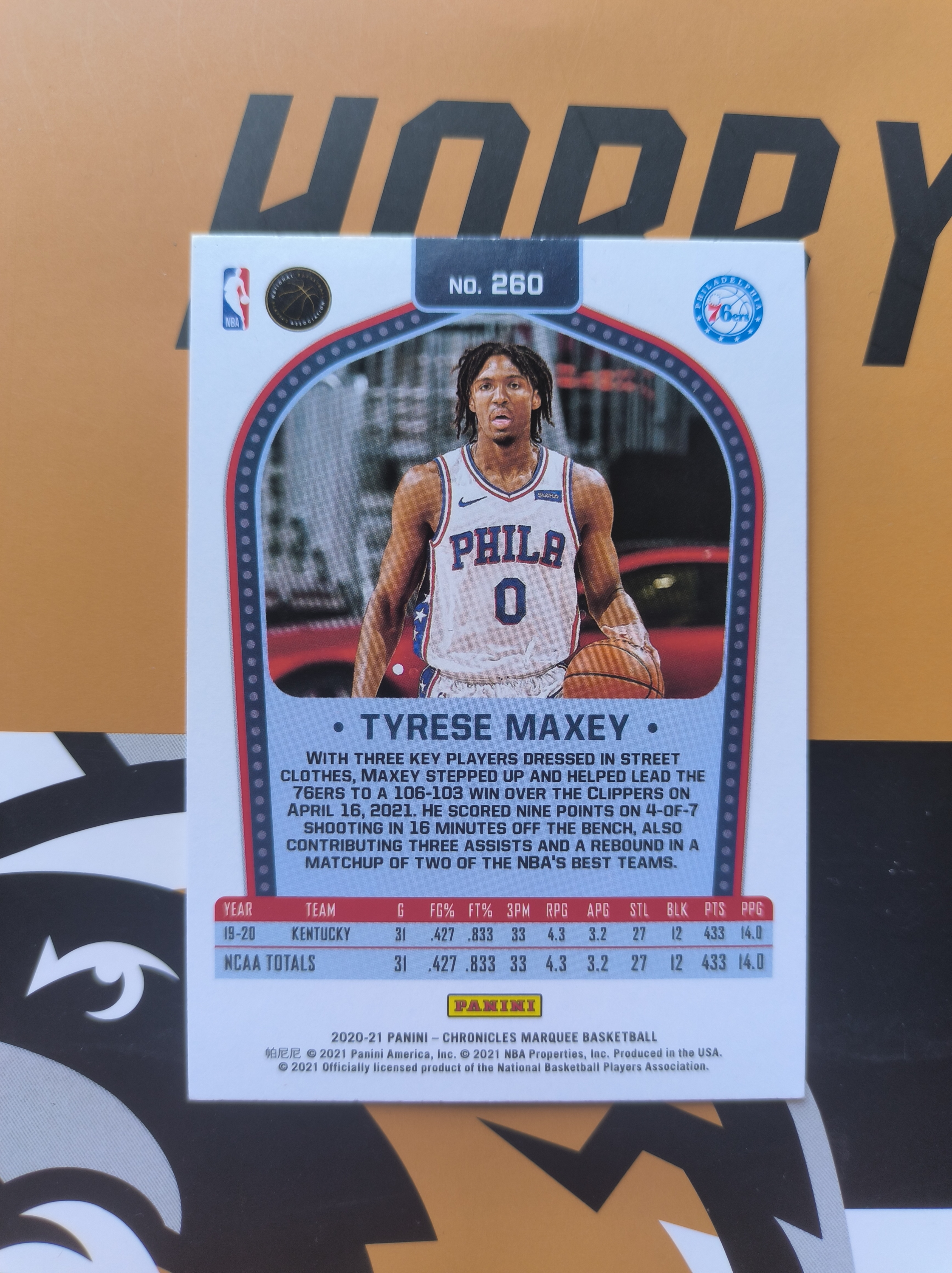 2020-21 Panini Marquee Tyrese Maxey RC 马克西 76人一哥 哈登门徒 得分榜榜首 马奎系列 新秀