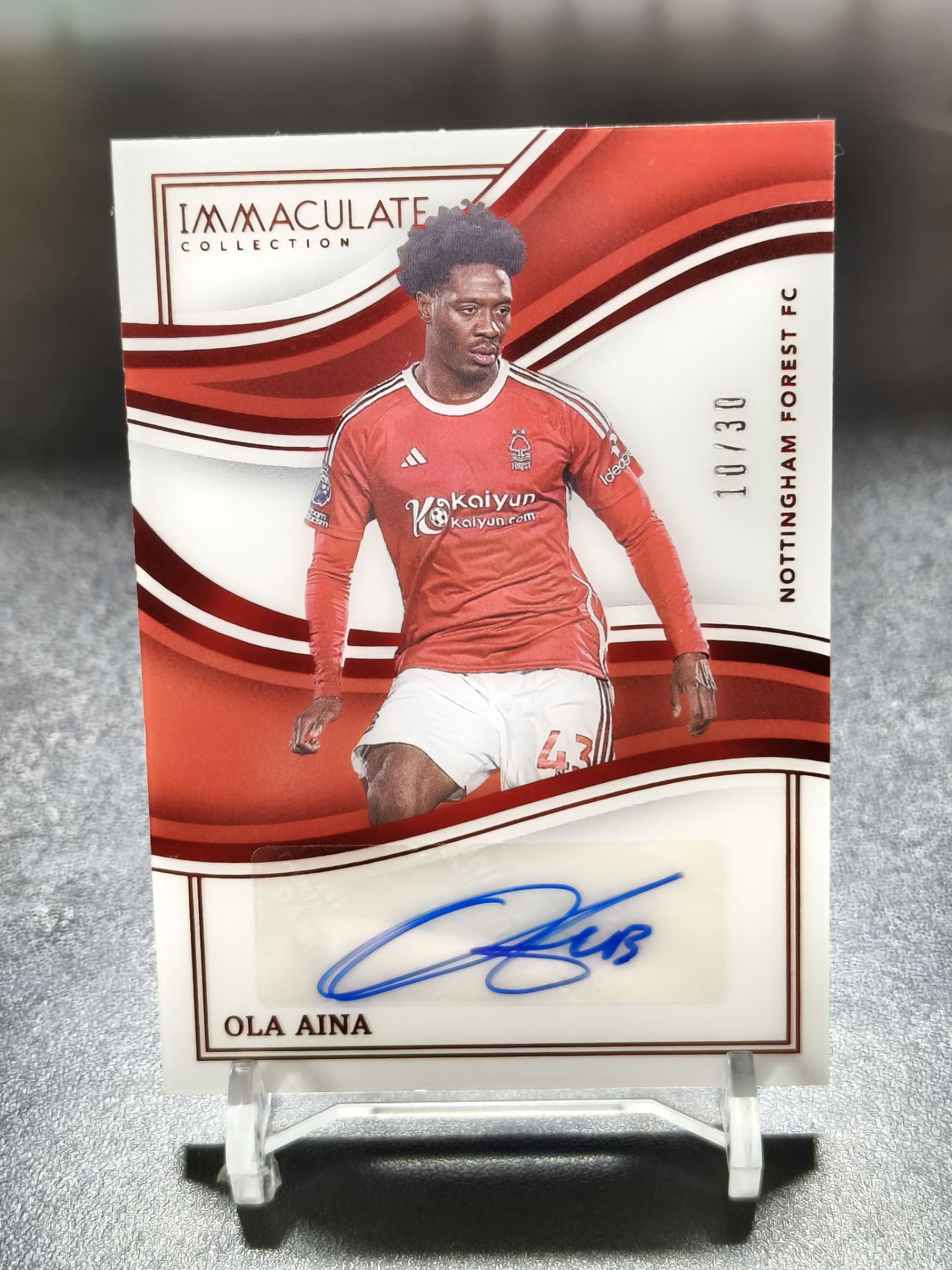 【浩行拍卖 截标预付82%】2023-24 panini immaculate ola aina 英超 诺丁汉森林 奥拉 埃纳 签字 红平行 10/30编 专收必备「琪局」1108K02劉