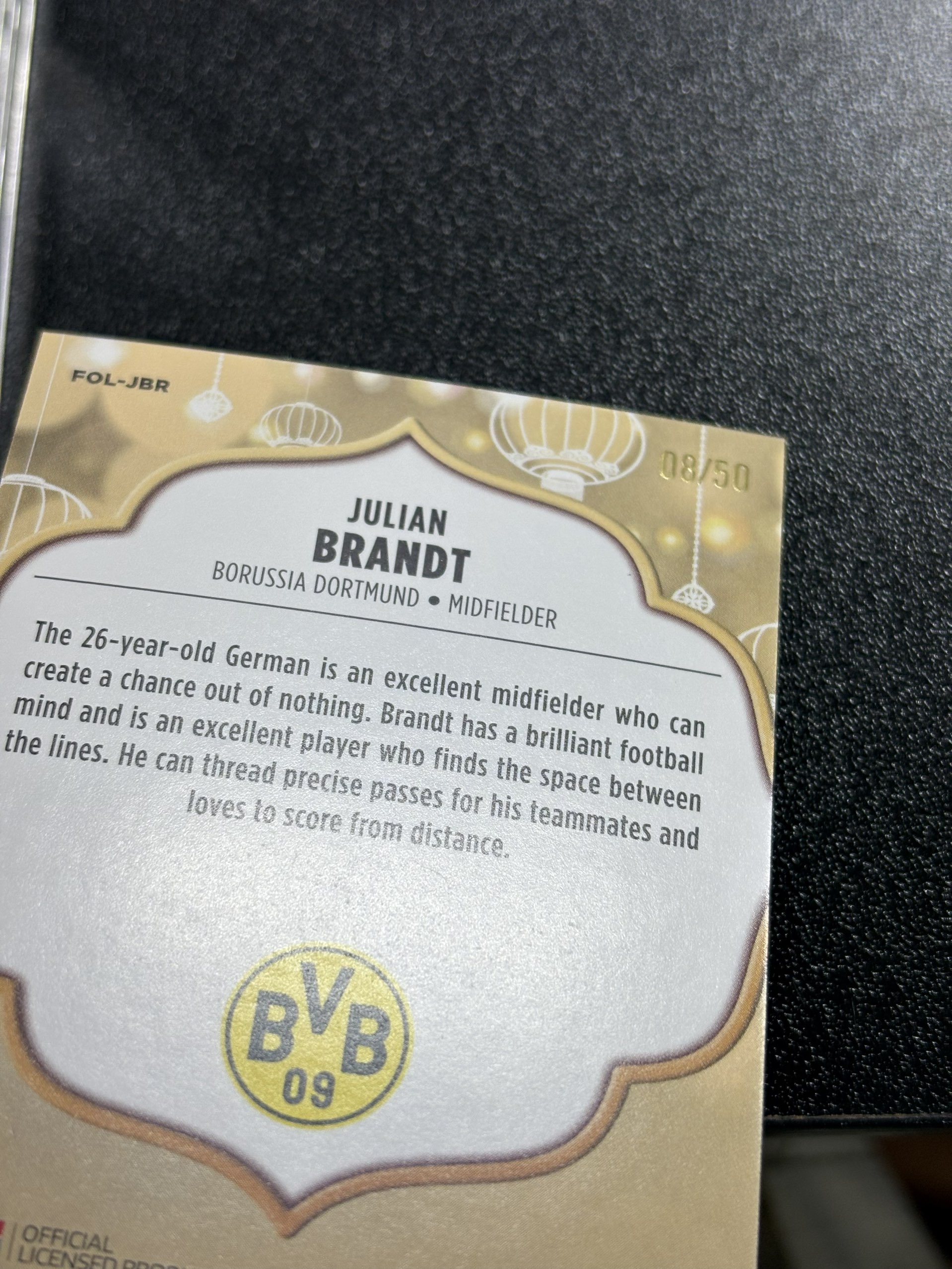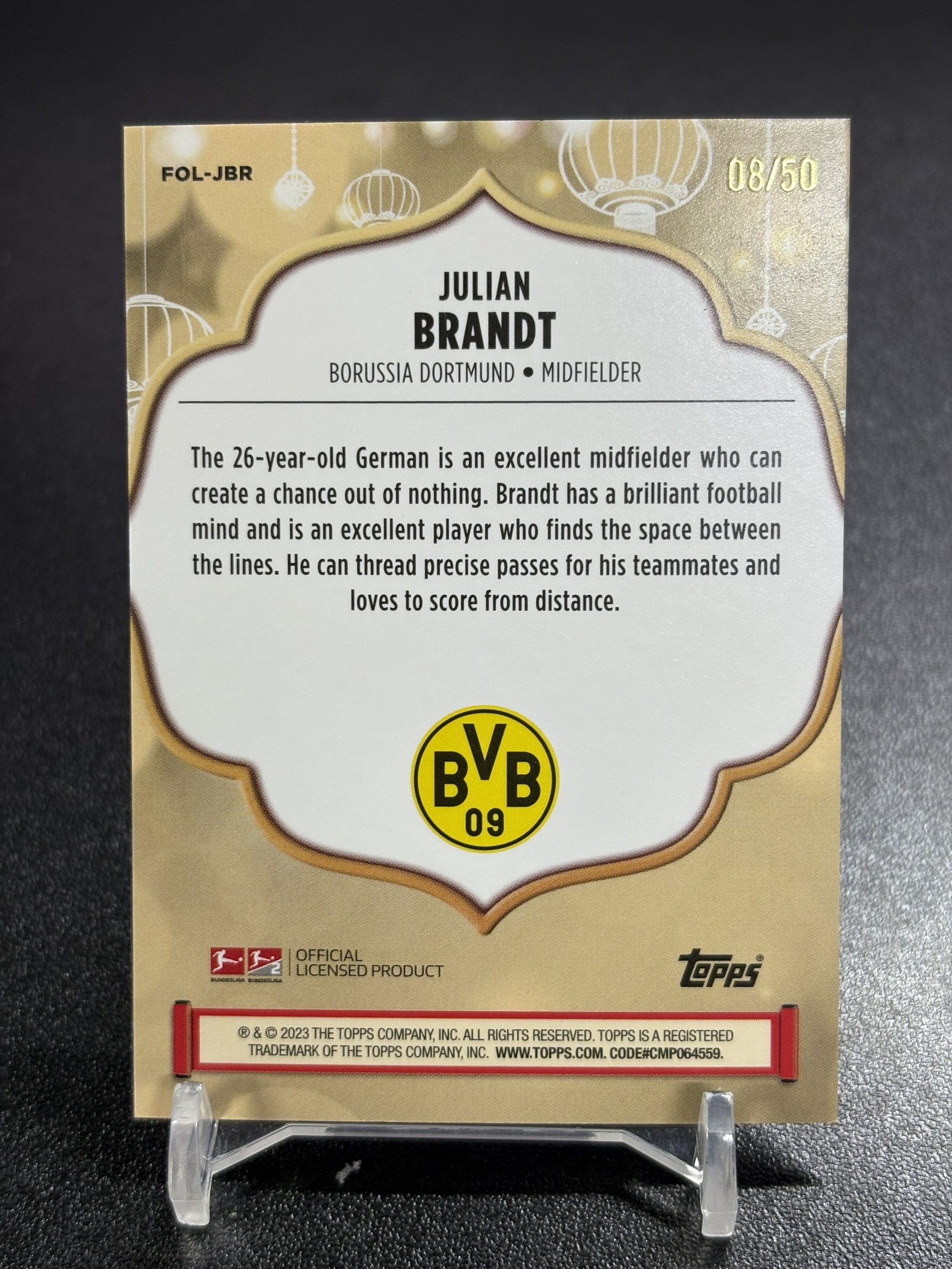 【浩行拍卖 截标预付82%】2023 topps julian brandt 德甲 碧玉 多特蒙德 尤利安 朱利安 布兰特 碧玉折 新春特卡 灯笼折 折射 金折 8/50编 瑕疵看图 专收必备「卜厮」1108S05鍾