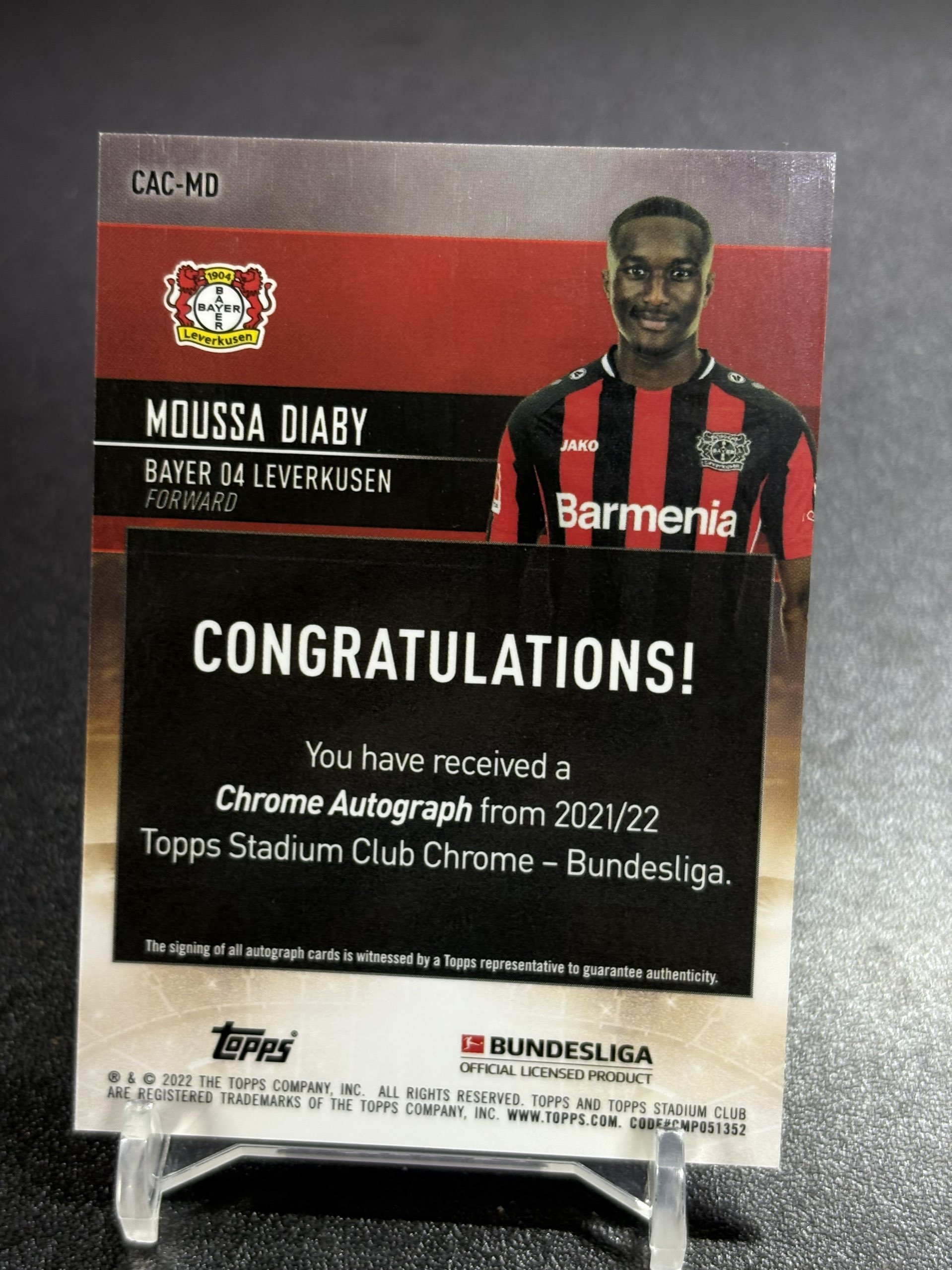 【浩行拍卖 截标预付82%】2022 topps Stadium Club Chrome moussa diaby 德甲 竞技场 沃勒库森 穆萨 迪亚比 折射 签字 瑕疵看图 专收必备「卜厮」1108S05鍾