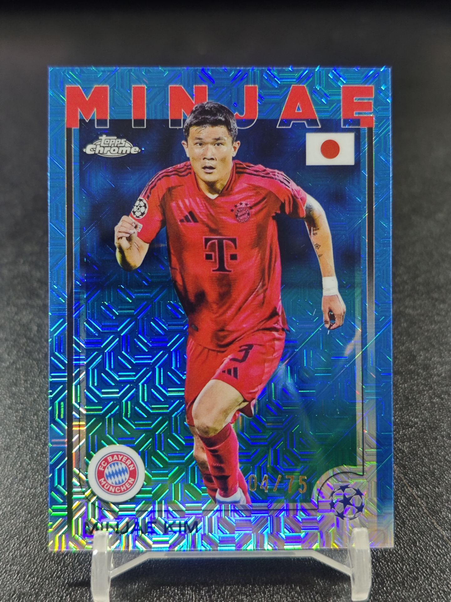 【浩行拍卖 截标预付82%】2025 topps Chrome minjae kim 欧冠 拜仁 日版 樱花盒 金玟哉 金闵哉 蓝mojo折 折射 4/75编 专收必备 瑕疵看图「卜厮」1108S03單