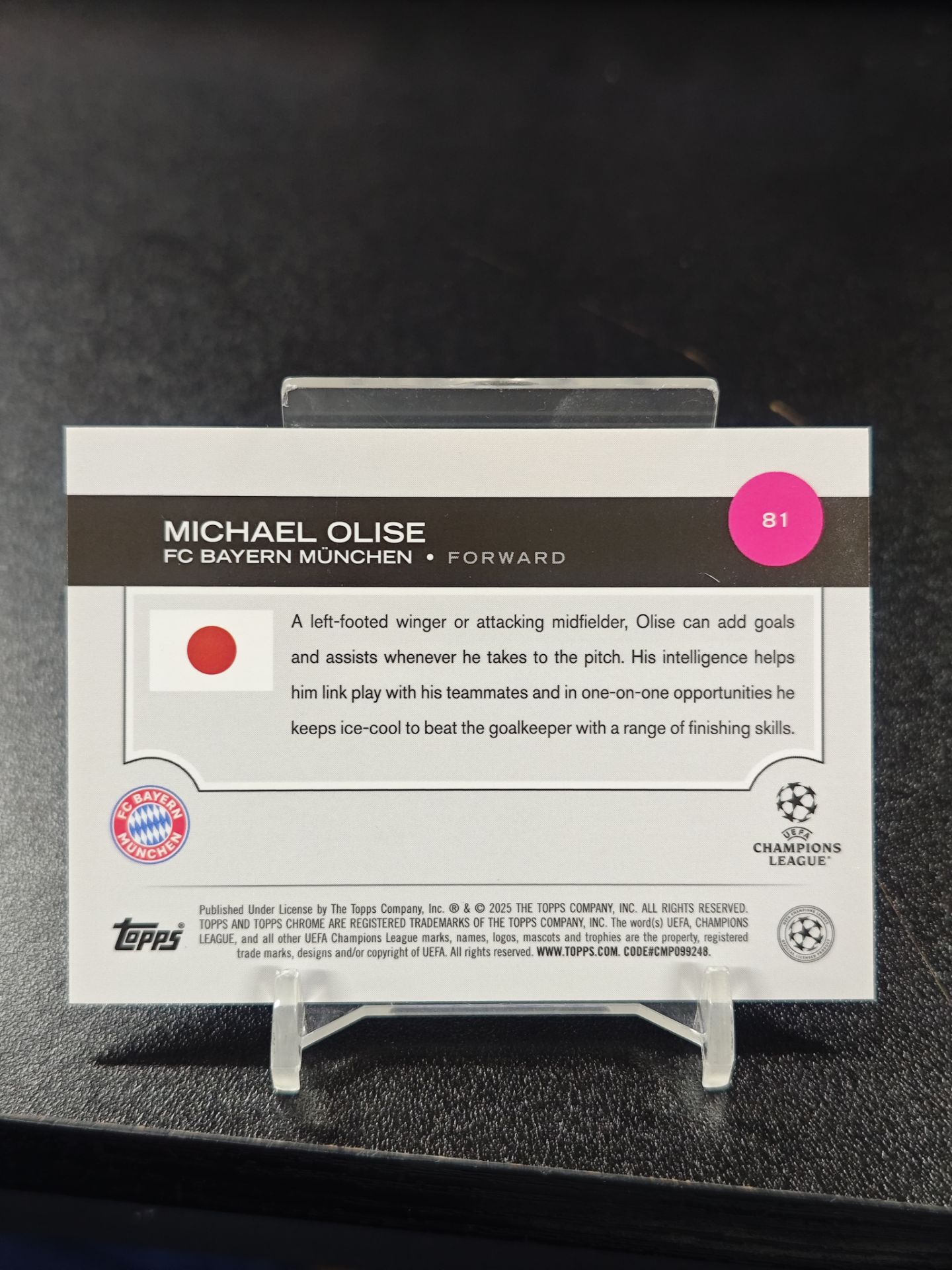 【浩行拍卖 截标预付82%】2025 topps Chrome Michael olise 欧冠 拜仁 樱花盒 日版 奥利塞 奥利斯 奥利赛 黄mojo折 折射 84/150编 专收必备「卜厮」1108S03單