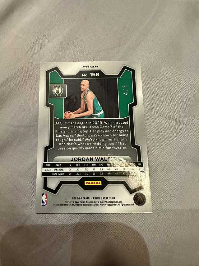 2023-24 Panini Prizm Jordan Walsh RC PZ RC新秀 凯尔特人 乔丹 沃尔什 格子折 4/8编 签字大光头新星 卡面无划痕 卡品优秀 居中完美