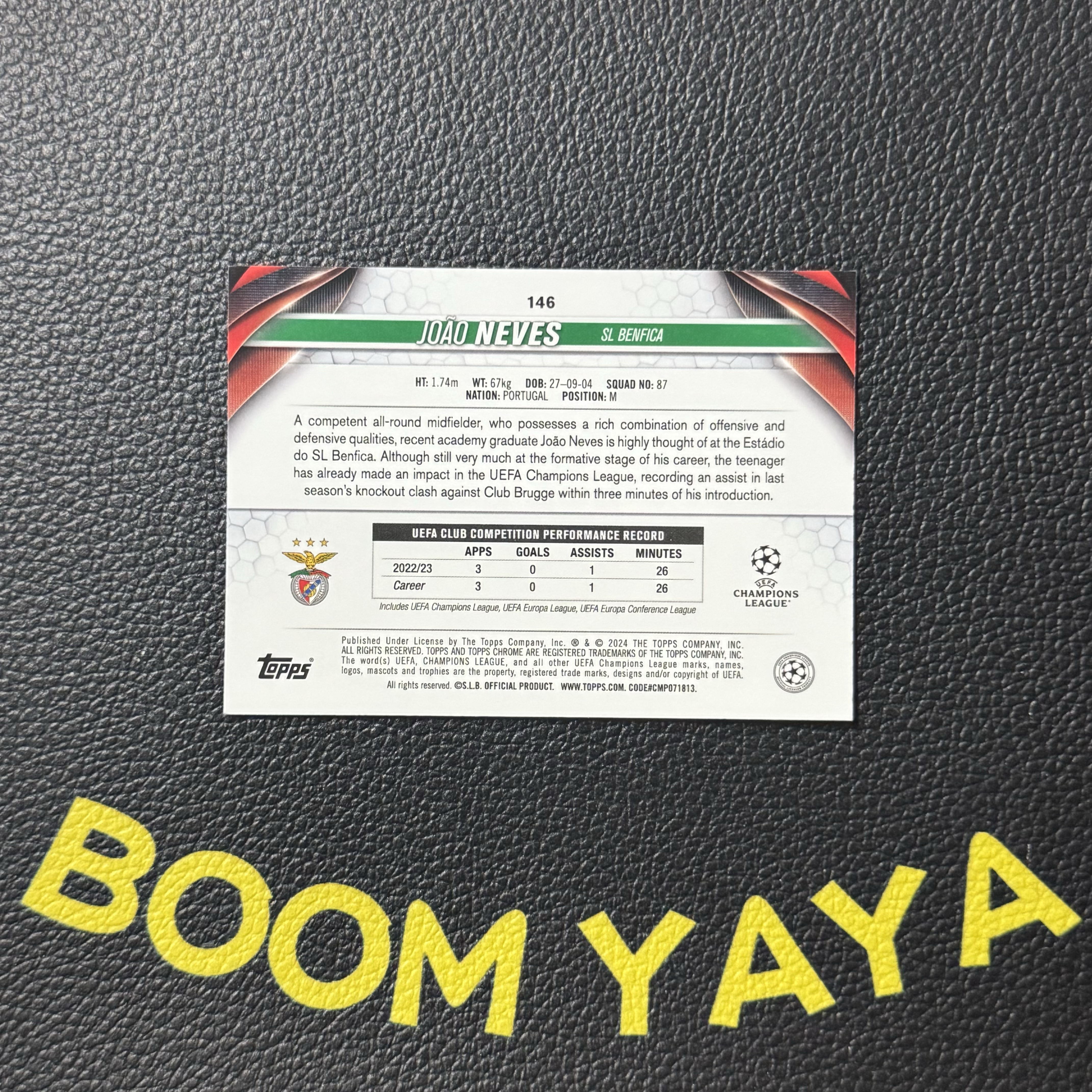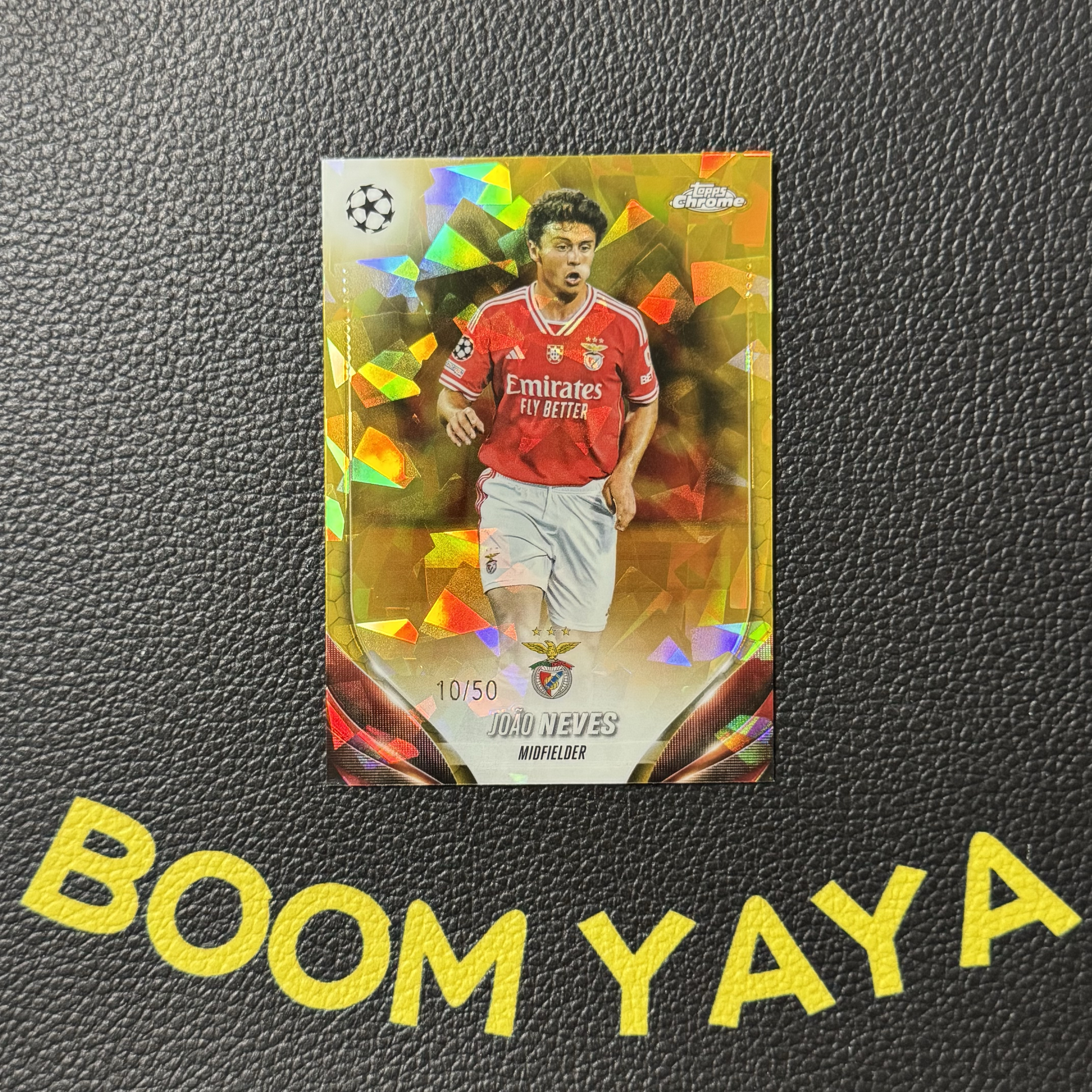 【Boom YaYa】2023-24 Topps chrome 蓝宝石 Joao Neves 若昂 内维斯 本菲卡 欧冠 10/50编 金碎冰折 默认微瑕 不累计 不到付