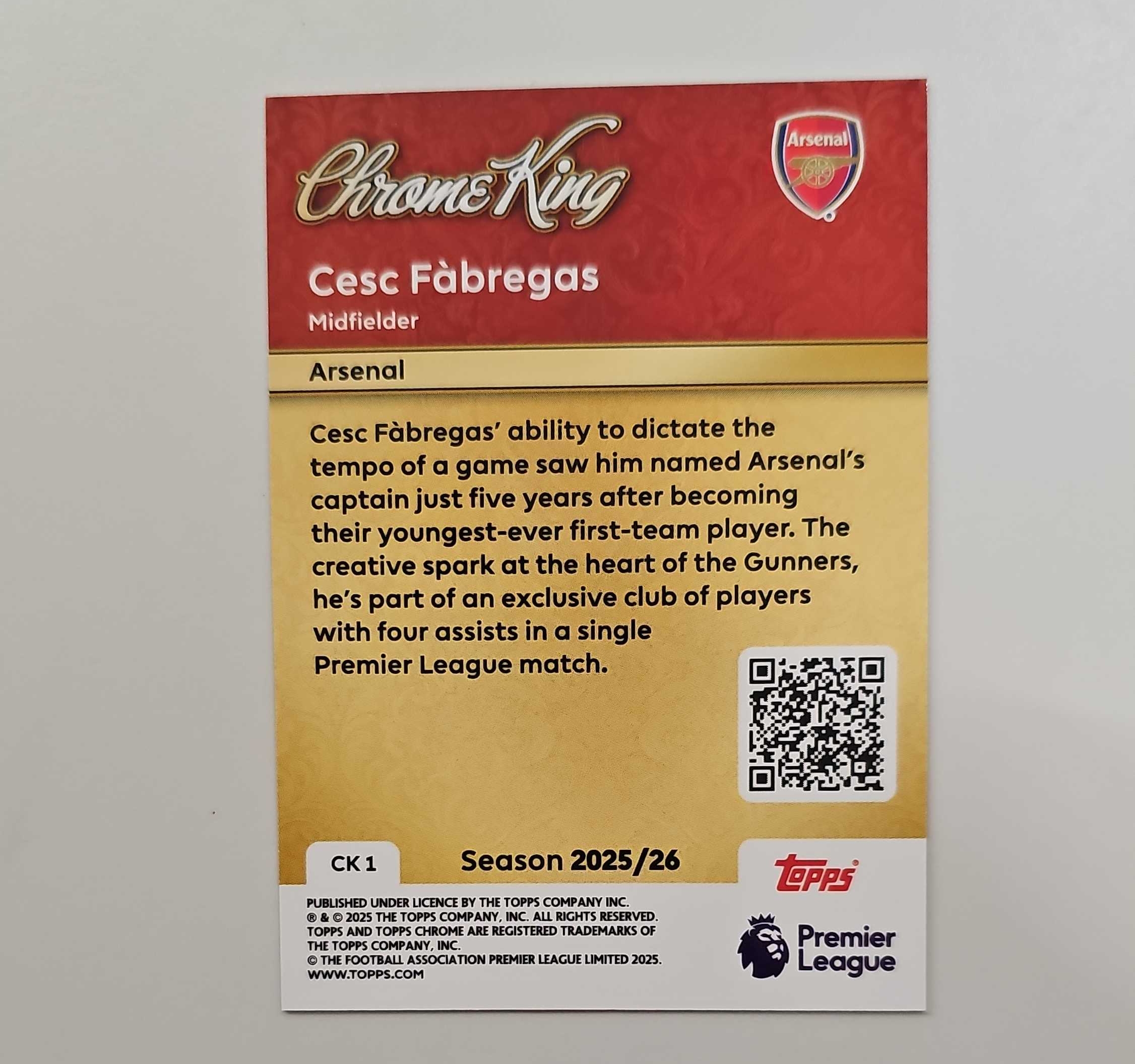 2025-26 Topps Chrome FABREGAS 【幻想代拍】英超 阿森纳 法布雷加斯 王者特卡 画框 银折实卡精美 收藏必备(孙哥)