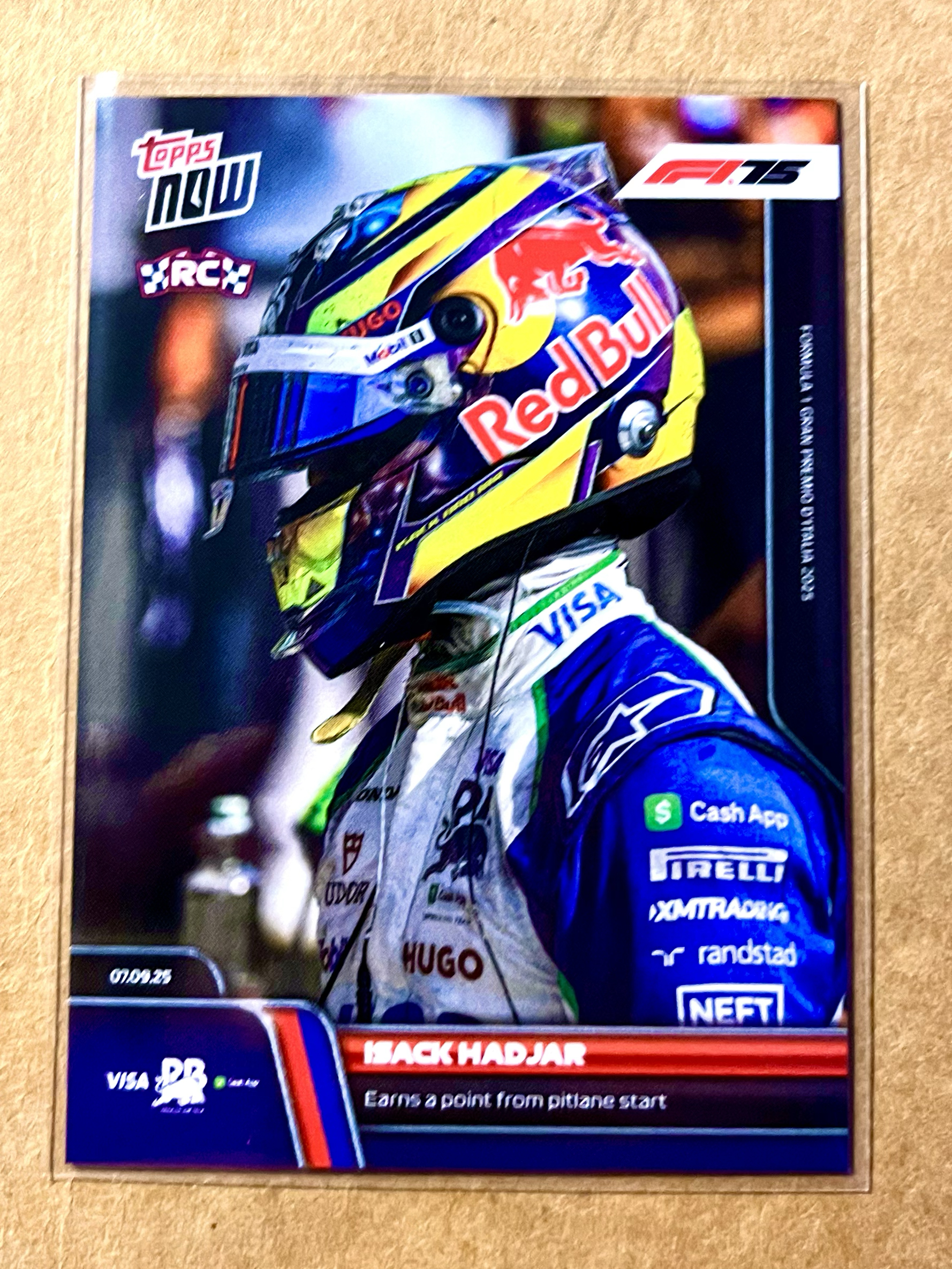2025 Topps 【蓝矿】 Isack Hadjar 伊萨克·哈贾尔 RC新秀标 Topps now系列 F1 75周年 意大利站 小红牛车队 从维修区起步依然获得积分