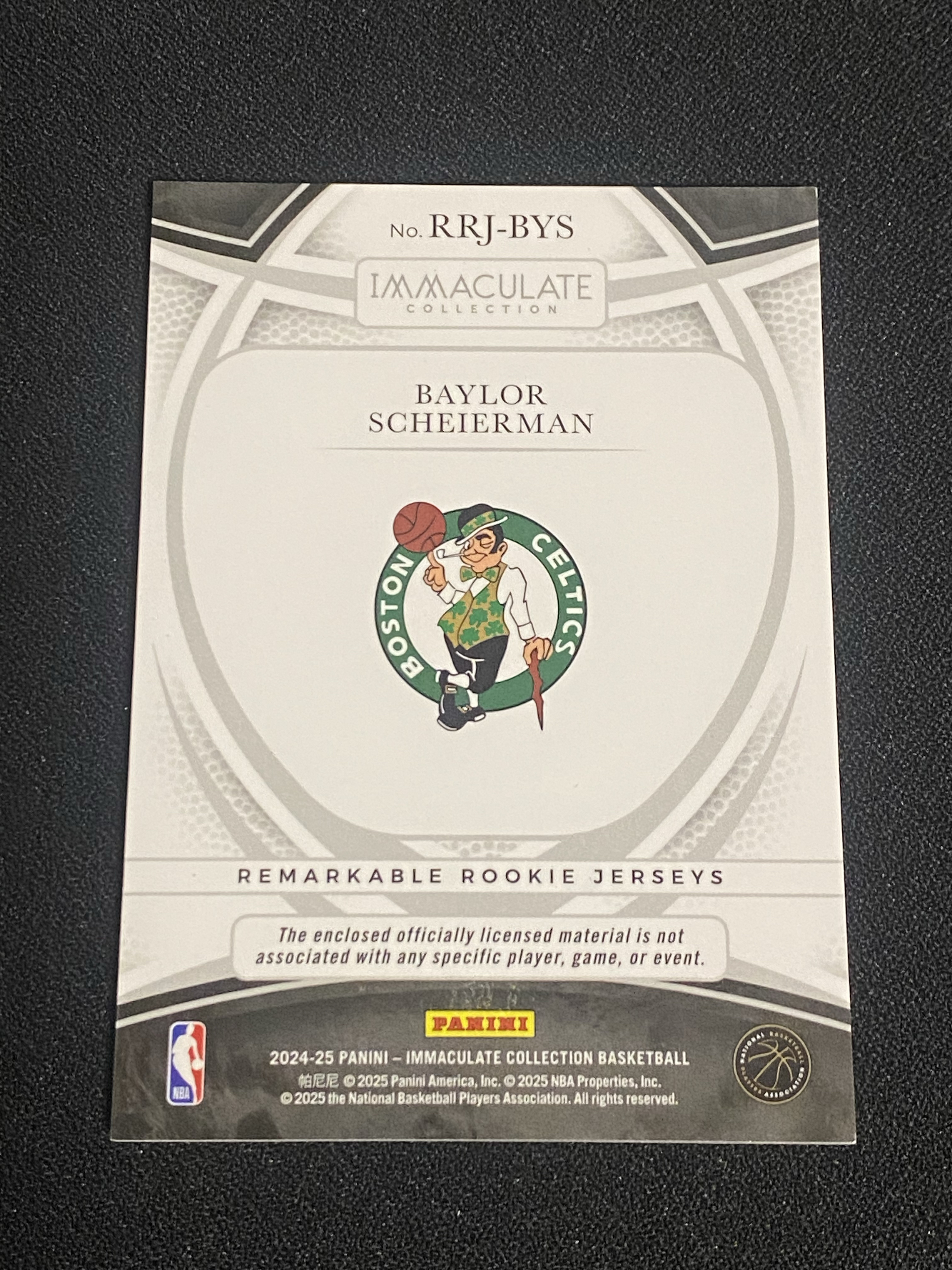 【胡子球手】2024-25 Panini Immaculate Baylor Scheierman RC 凯尔特人 新秀 沙伊尔曼 /25编 蓝平行 小窗球衣patch jh
